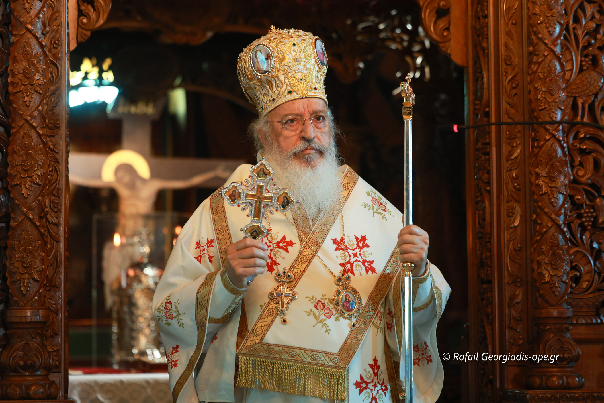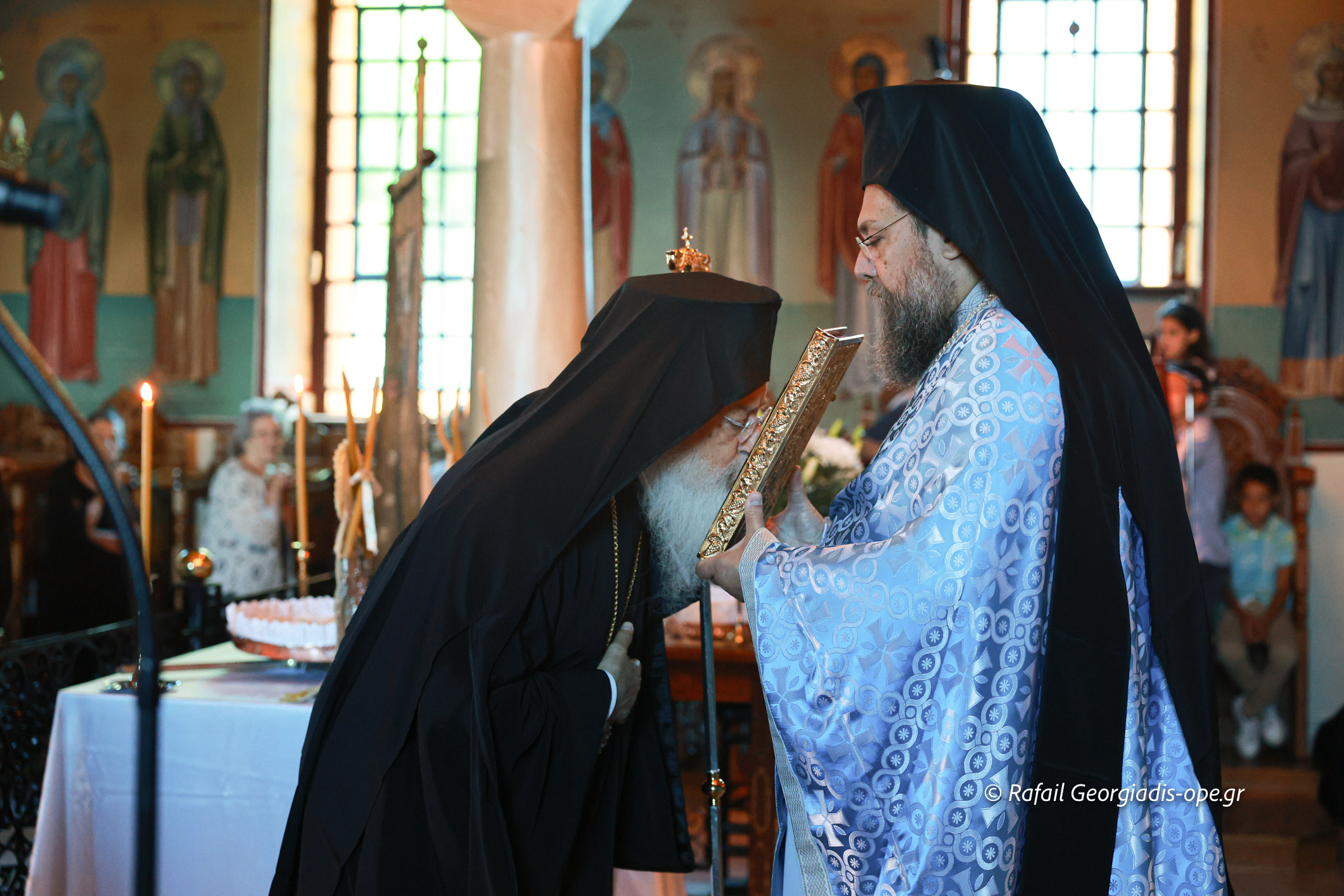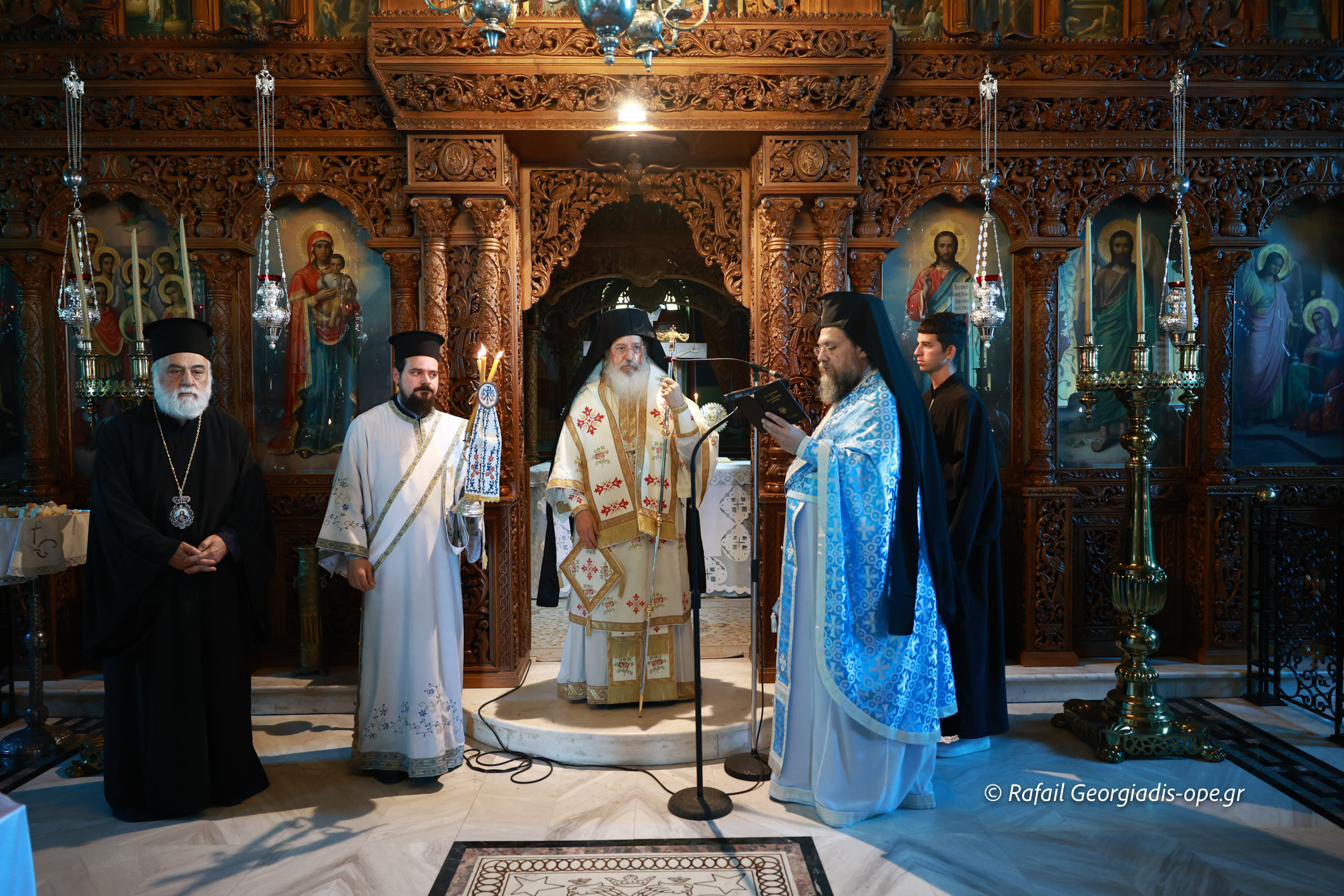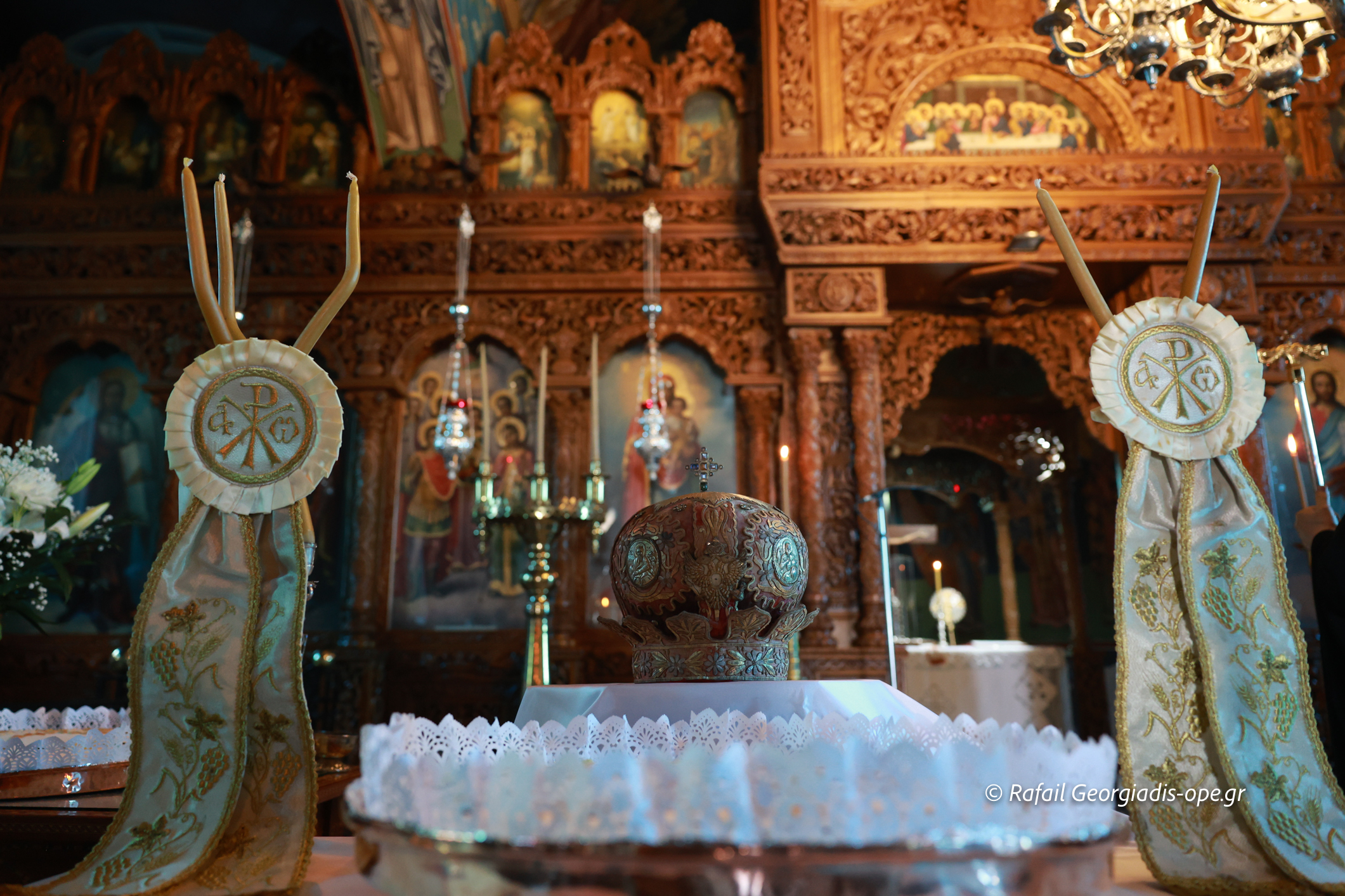 Τον Σεβασμιώτατο πλαισίωσαν ο προϊστάμενος του ναού, Αρχιμανδρίτης Ιάκωβος Βασιλείου και ο διάκονος της Μητρόπολης. Πιστοί από την τοπική κοινωνία και επισκέπτες της περιοχής παρακολούθησαν τη Θεία Λειτουργία.