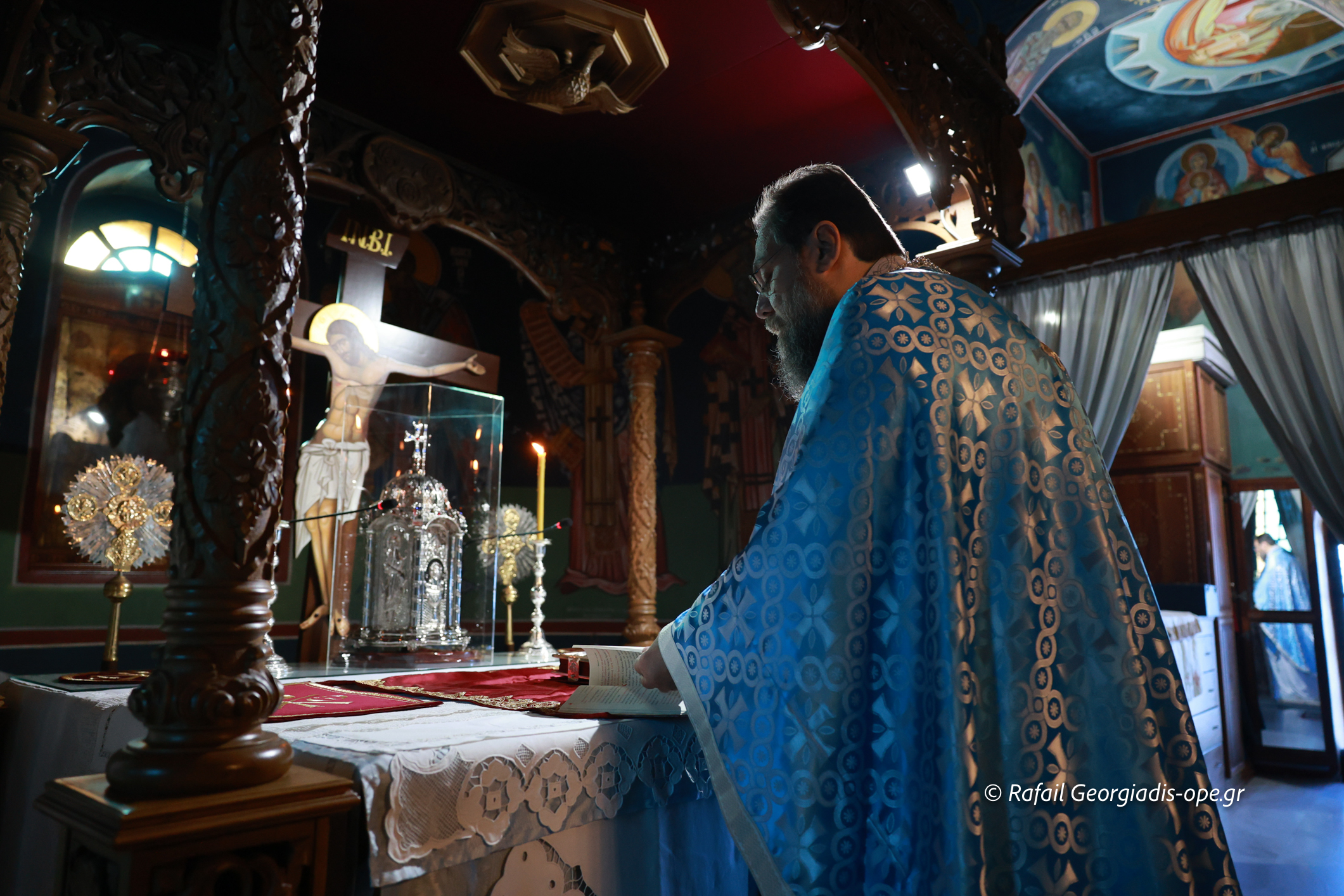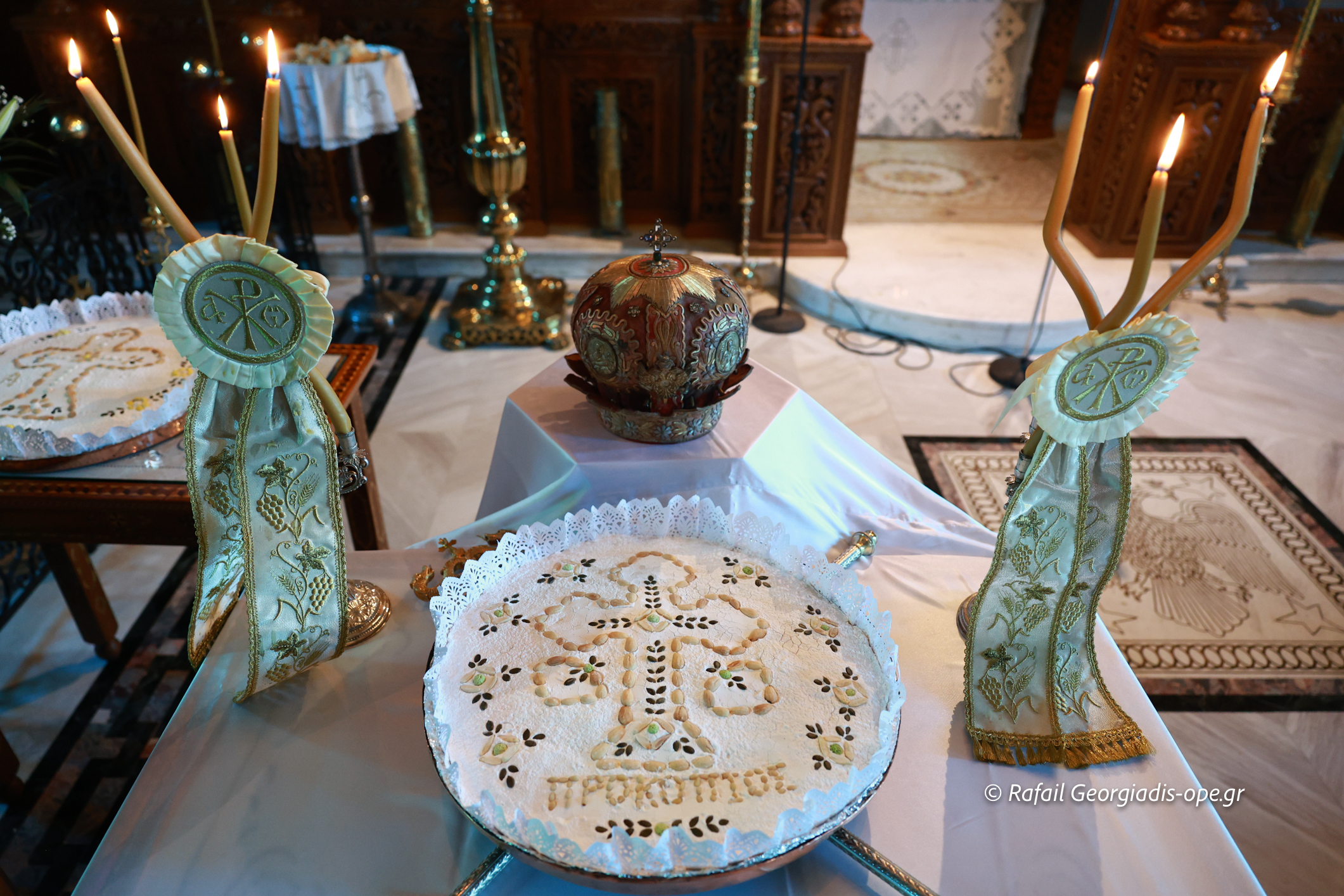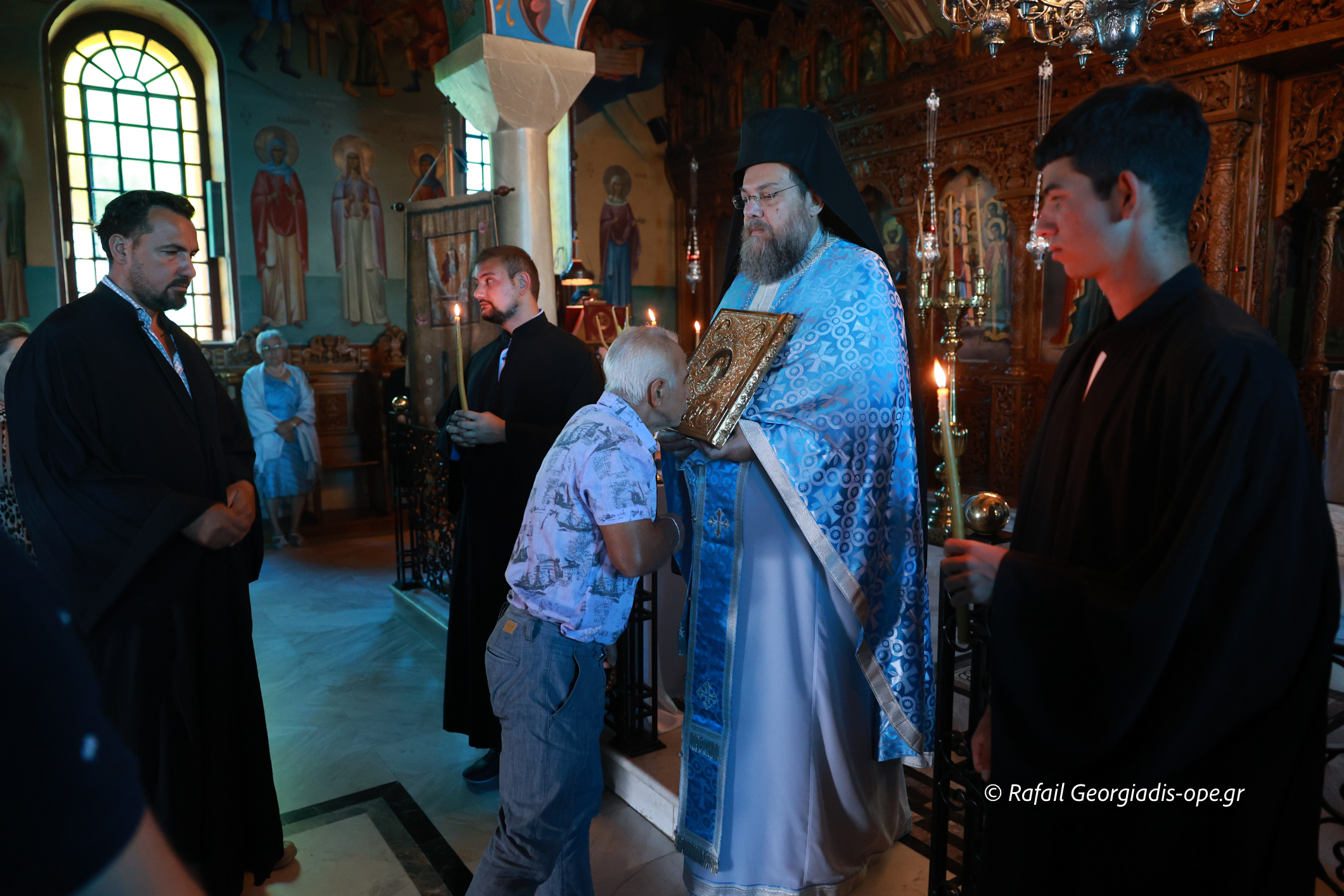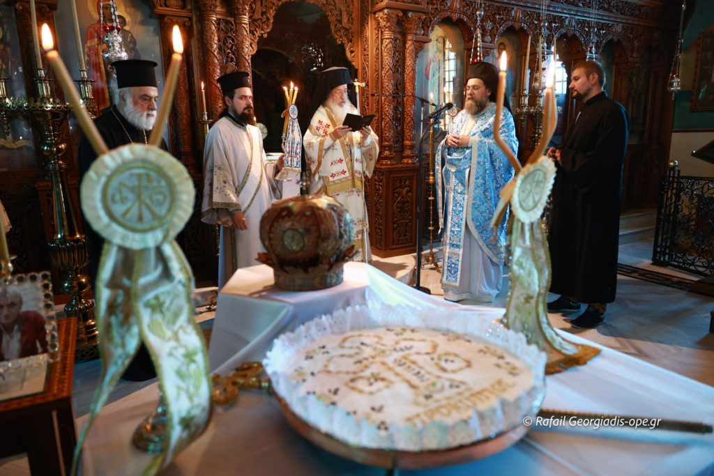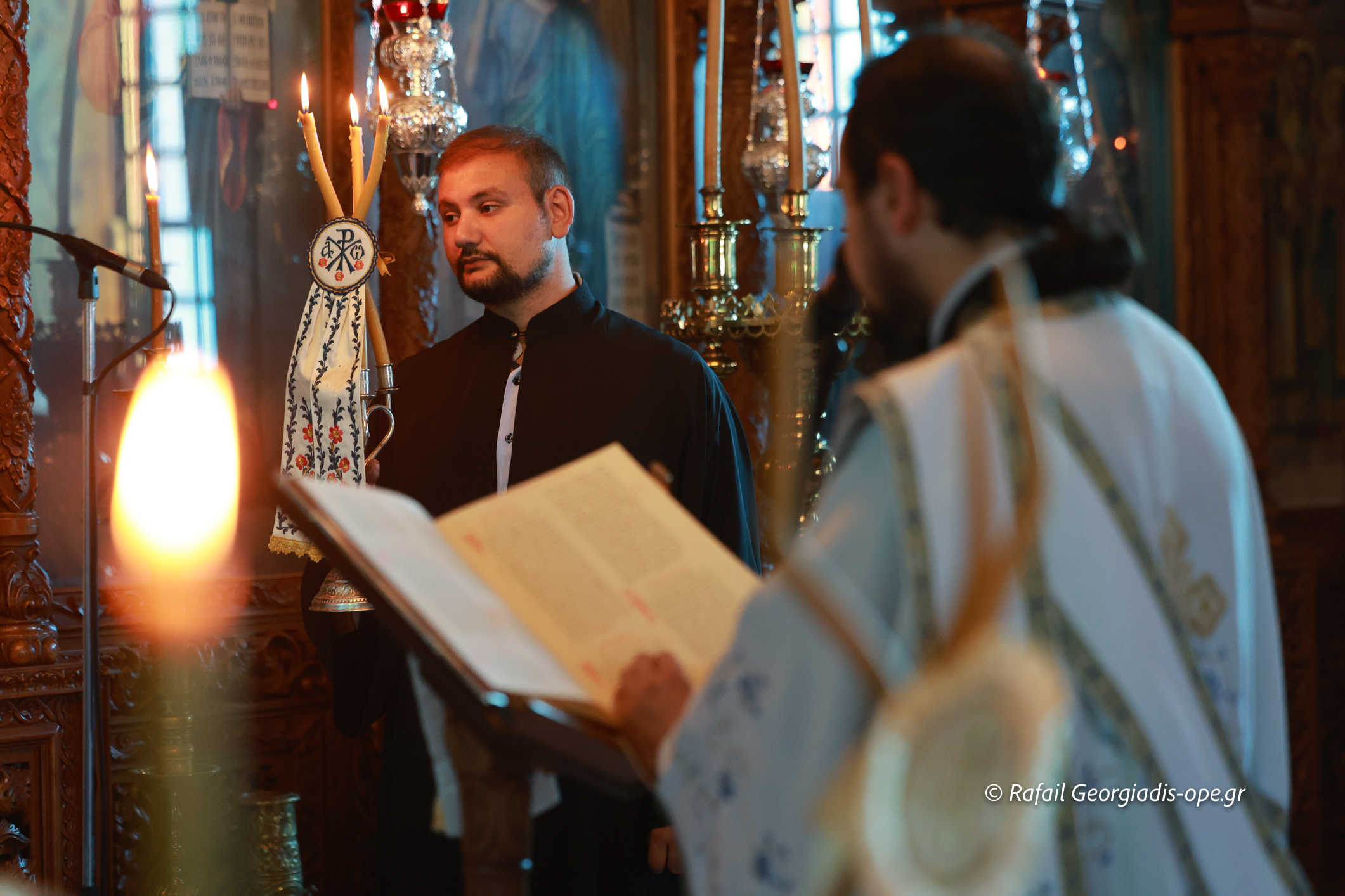 Τον Σεβασμιώτατο πλαισίωσαν ο προϊστάμενος του ναού, Αρχιμανδρίτης Ιάκωβος Βασιλείου και ο διάκονος της Μητρόπολης. Πιστοί από την τοπική κοινωνία και επισκέπτες της περιοχής παρακολούθησαν τη Θεία Λειτουργία.