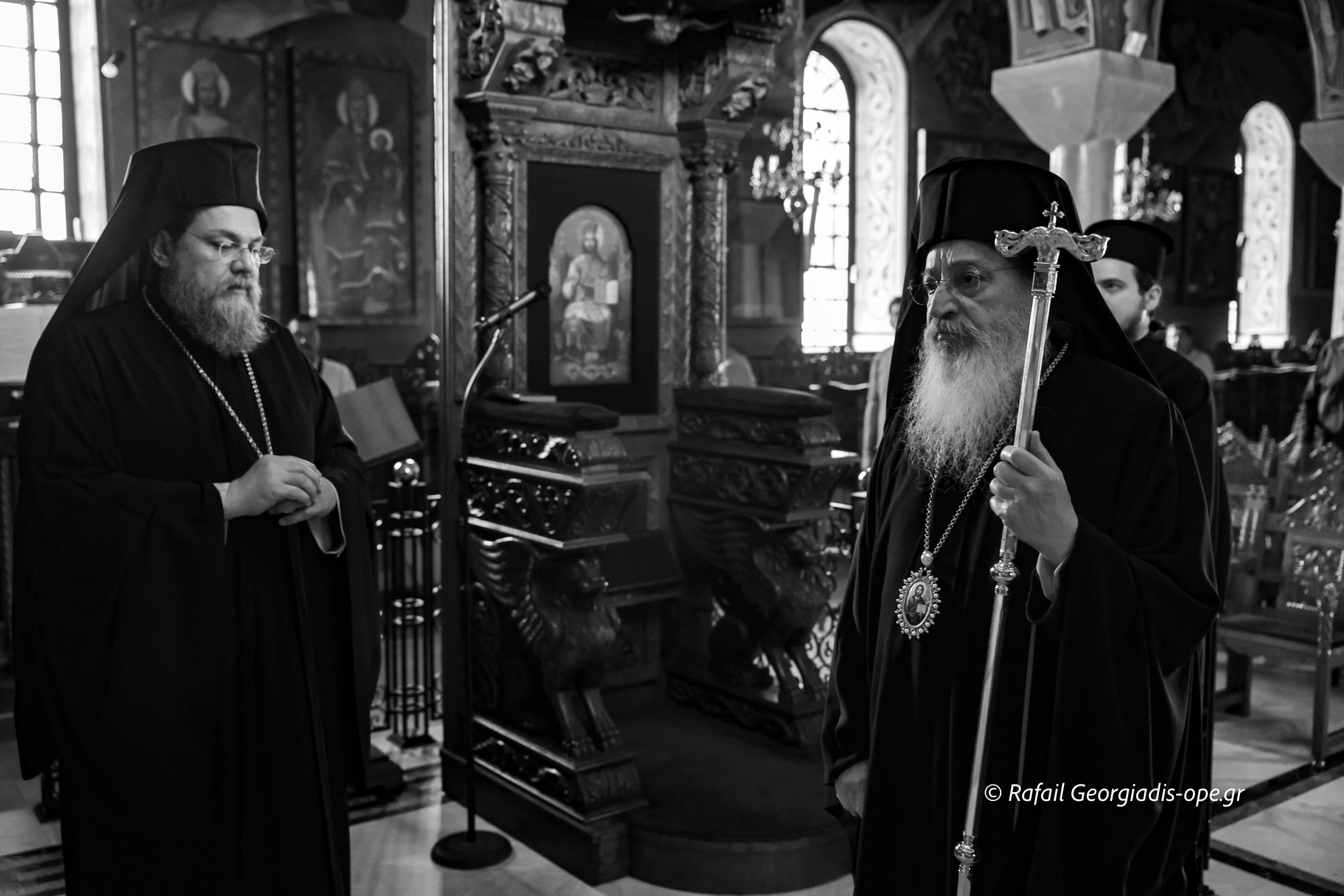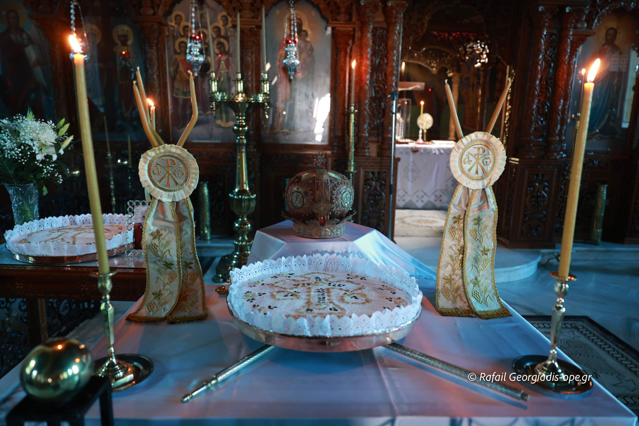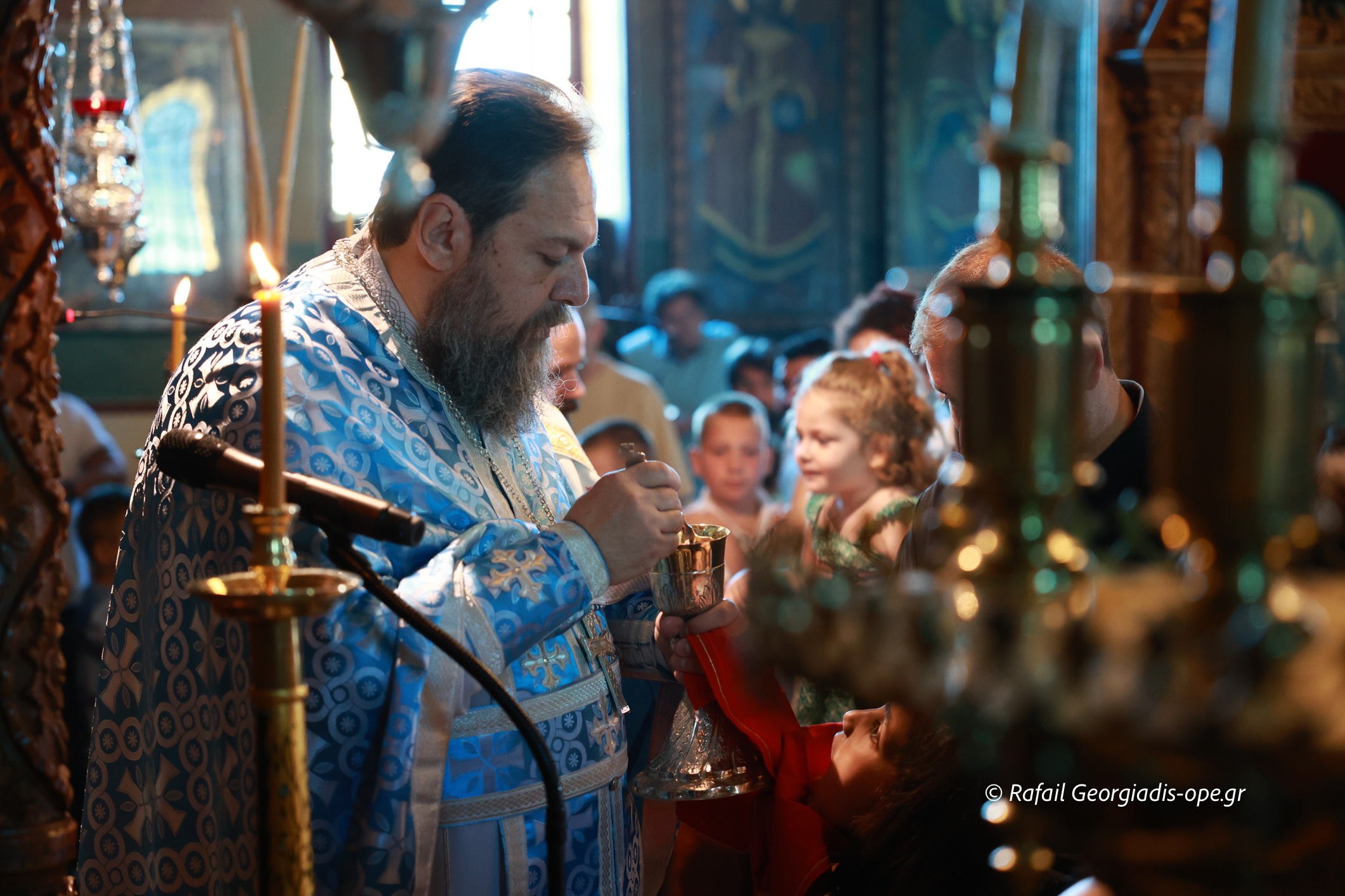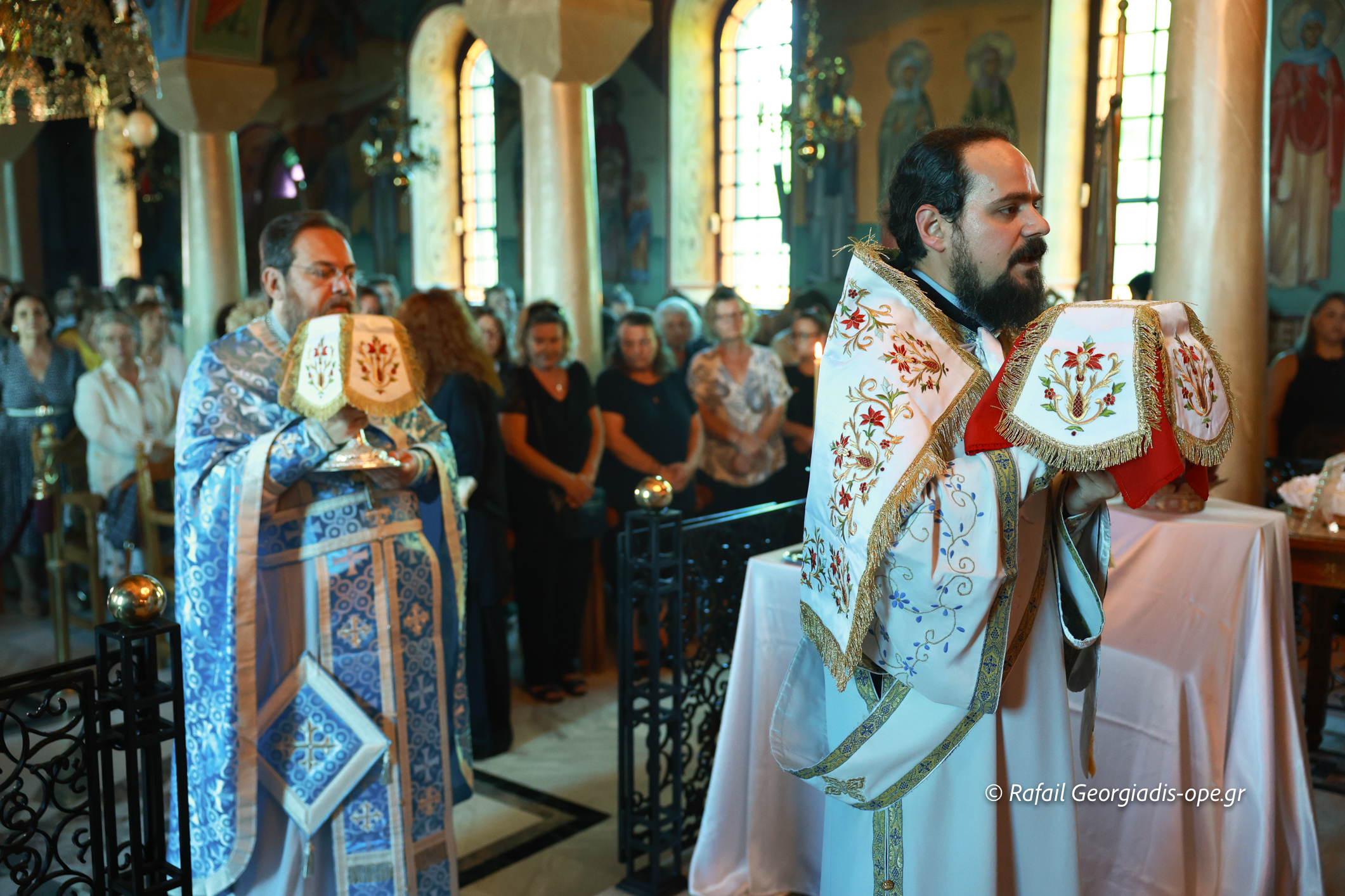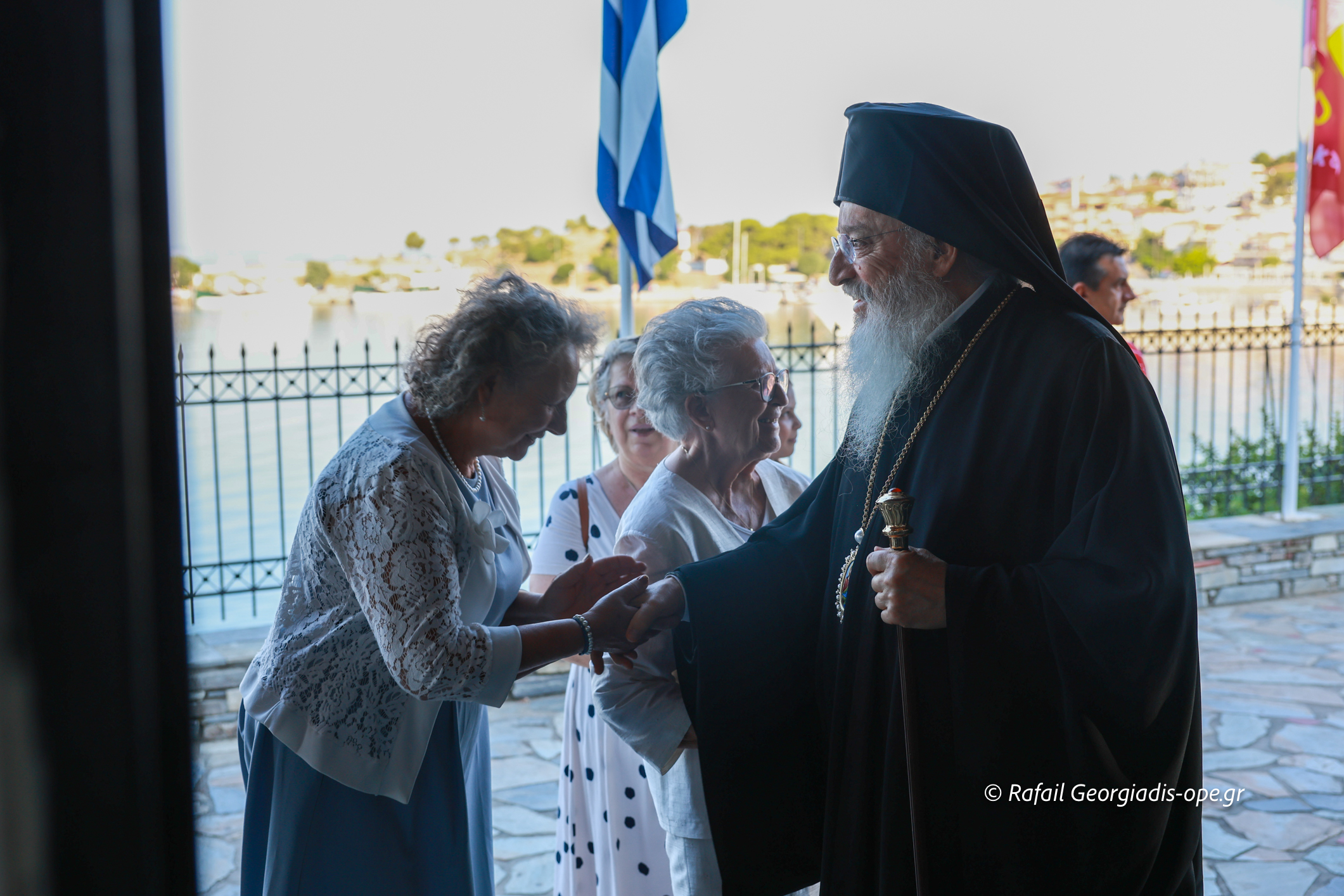 Τον Σεβασμιώτατο πλαισίωσαν ο προϊστάμενος του ναού, Αρχιμανδρίτης Ιάκωβος Βασιλείου και ο διάκονος της Μητρόπολης. Πιστοί από την τοπική κοινωνία και επισκέπτες της περιοχής παρακολούθησαν τη Θεία Λειτουργία.