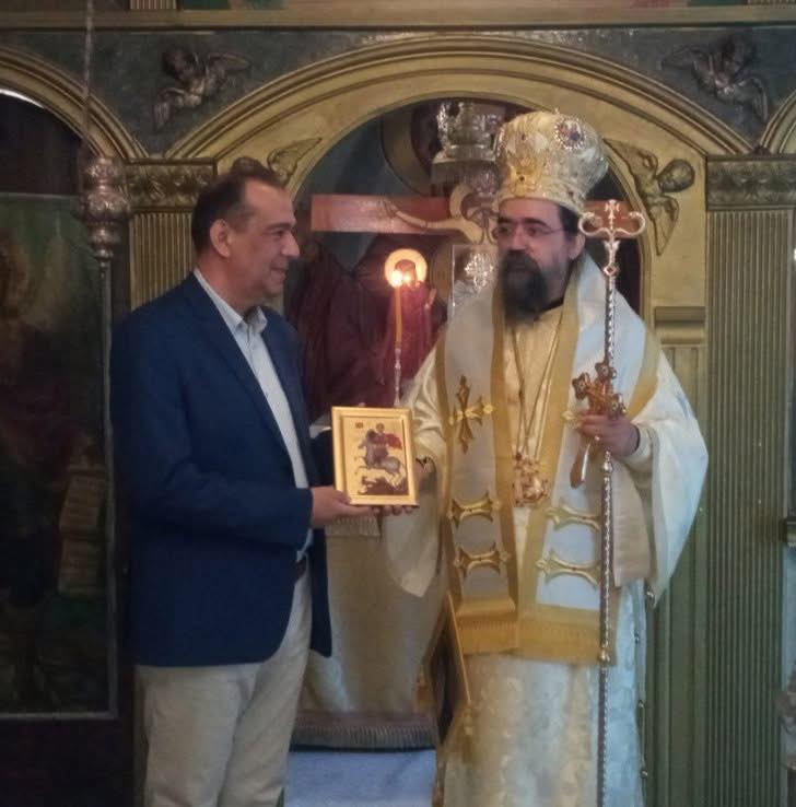 Ιδιαιτέρως αναφέρθηκε στον νέο Διοικητή, στον οποίο ευχήθηκε υγεία, φώτιση και δύναμη στα καθήκοντά του, προς όφελος των ασθενών και του προσωπικού του Νοσοκομείου. Ως ευλογία, του προσέφερε μία εικόνα του πολιούχου Αγίου Μηνά.