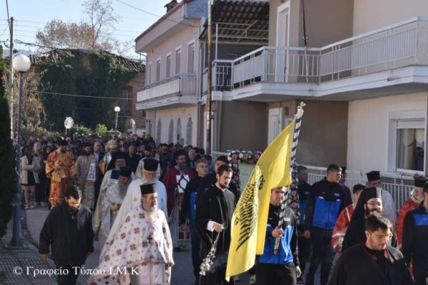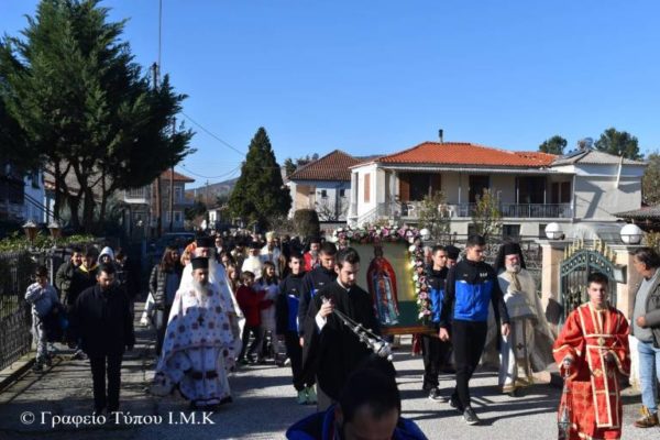 Στο τέλος της Θείας Ευχαριστίας σχηματίσθηκε πομπή και η Λιτάνευση της Ιεράς Εικόνος της Αγίας στους δρόμους του χωριού, που θύμιζε πασχάλια περίοδο, με τους ύμνους των Ιεροψαλτών, και τα παιδιά και τους νέους του χωριού, να περικυκλώνουν την εικόνα της.