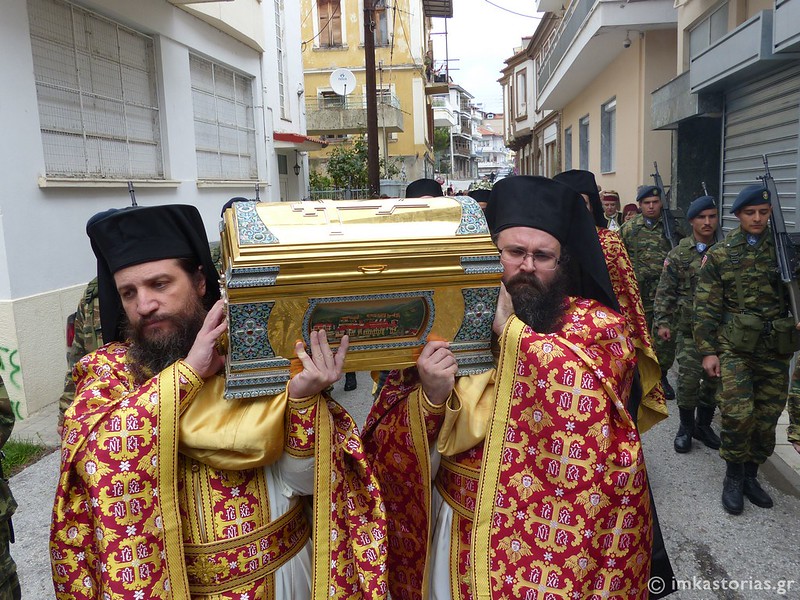 Έτσι, τελέστηκαν περίλαμπρες ακολουθίες, ενώ επίκεντρο αυτών απετέλεσε η τιμή της παρουσίας στην Καστοριά για πρώτη φορά των τιμίων Καρών των μαρτύρων αυτών, που φυλάσσονται στην Ιερά Μονή Αγίας Αναστασίας Φαρμακολυτρίας, στα Βασιλικά Χαλκιδικής.