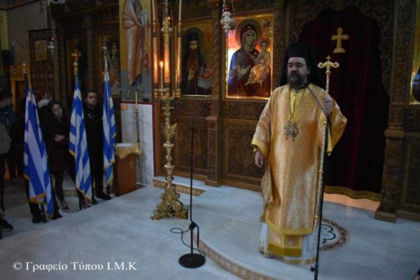 Ο Σεβασμιώτατος μίλησε στα παιδιά για το νόημα της κοινής εορτής των Τριών Ιεραρχών, που είναι η προσπάθεια της Ανατολικής Ρωμαικής Αυτοκρατορίας να δώσει μία ταυτότητα στην παιδεία της, εν όψει των πολλών εξωτερικών και εσωτερικών επηρεασμών. Στο τέλος τους διάβασε ένα ποίημα ενός παιδιού τετάρτης Δημοτικού για τους Τρεις Ιεράρχες.