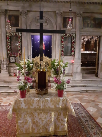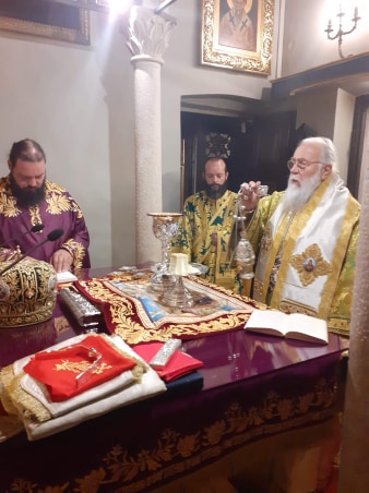 Κεκλεισμένων των θυρών τέλεσε τη Θεία Λειτουργία στο Ιερό προσκύνημα του Αγίου Σπυρίδωνος το πρωί της Κυριακής 22 Μαρτίου 2020, της Σταυροπροσκυνήσεως, ο Σεβασμιώτατος Μητροπολίτης Κερκύρας, Παξών και Διαποντίων Νήσων κ. Νεκτάριος.