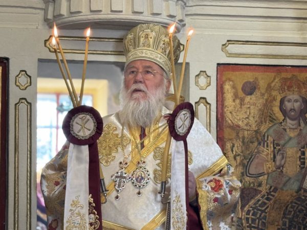 Κατά τη Θεία Λειτουργία, ο Σεβασμιώτατος απευθυνόμενος προς το πολυπληθές εκκλησίασμα, αφού προσφώνησε όλους τους επισήμους, δι’ ολίγον ανεφέρθη στο βίο του Αγίου Χαραλάμπους και συμπερασματικά στάθηκε στο αντιστασιακό πνεύμα το οποίον διέκρινε όλους τους Αγίους Μάρτυρες, αλλά εν προκειμένω τον Άγιο Ιερομάρτυρα Χαράλαμπο. Ο Άγιος, ενώ ήταν γέρος εις την ηλικίαν, η δύναμις του πνεύματος απεδείχθει ενός νέου και ισχυρού ανθρώπου τη στιγμή που ο εράσμιος της ζωής του για τον οποίον ενεδύθη το ένδυμα της ιεροσύνης καθυβρίζετο από την ειδωλολατρία της εποχής εκείνης.