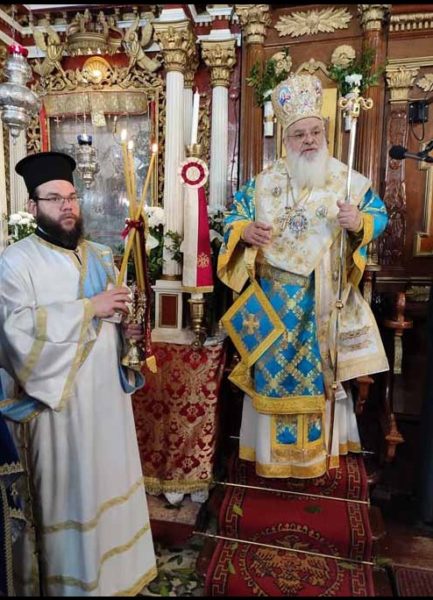 Ο Σεβασμιώτατος Βρεσθένης ομιλώντας στο πολυπληθές εκκλησίασμα της εορταζούσης ενορίας, τόνισε ότι το πρόσωπο της Παναγίας, μας χάρισε στην ανθρωπότητα την χαρά την πάντα νούν υπερέχουσαν, με την σάρκωση του Υιού και Λόγου του Θεού και δεήθηκε στην Παναγίας μας για την κατάπαυση του πολέμου και την επικράτηση της ειρήνης στον σύμπαντα κόσμο.