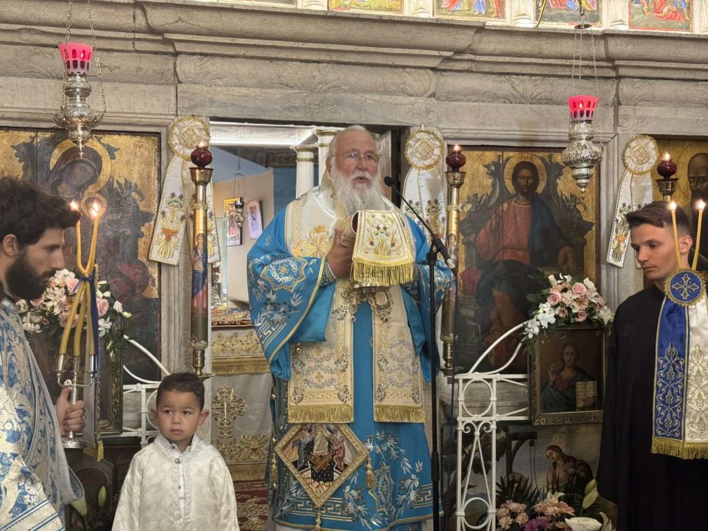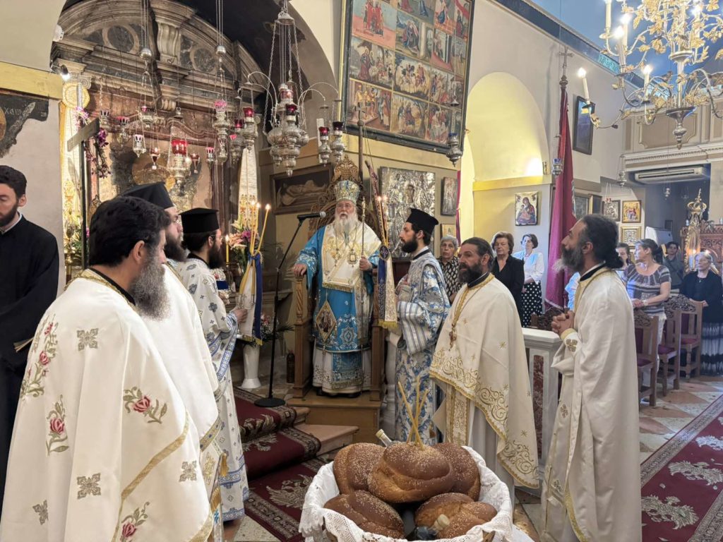 Ο Σεβασμιώτατος, απευθυνόμενος στο εκκλησίασμα κατά την ομιλία του, μετά τον αναστάσιμο χαιρετισμό, αναφέρθηκε στο πρόσωπο της Υπεραγίας Θεοτόκου, η οποία σε όλα τα γεγονότα του πάθους και της Αναστάσεως του Κυρίου μας είχε πρωτεύουσα θέση, ως και σε όλη την επίγειο ζωή του Κυρίου μας. Μέσα λοιπόν σε αυτή την περίοδο, η τοπική Εκκλησία δέχθηκε τη μεγάλη ευεργεσία από την Παναγίας μας, που με ένα μεγάλο υπερφυές γεγονός, το οποίο στην εκκλησιαστική γλώσσα ονομάζεται, «θαύμα». Ένας απλός εντόπιος άνθρωπος, ονόματι Στέφανος, το 1530 μ. Χ. , κατηγορήθηκε αδίκως ότι υπεξαίρεσε από ένα μύλο αλεύρι και η δικαιοσύνη της εποχής των καταδίκασε επιβάλλοντάς του την ποινή της εξόρυξης των οφθαλμών του. Ο δυστυχής αυτός άνθρωπος, οδηγούμενος από την πονεμένη μητέρα του στο μοναστήρι της Υ. Θ. στην περιοχή της Κασσιόπης. Τότε, οι δυο τους, παρέμειναν καθ’ όλην τη νύκτα προσευχόμενοι. Έτσι, Η Παναγία επέβλεψε στην πίστη, την υπομονή και την επιμονή τους και θεράπευσε τον τυφλό Στέφανο, δίδοντάς του και πάλι μάτια.