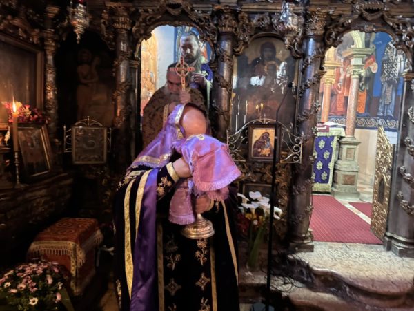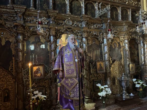Ο Σεβασμιώτατος στην ομιλία του αναφέρθηκε στο μαρτύριο των δύο Αγίων Μαρτύρων, οι οποίοι ήτο ανδρόγυνο και καταγόμενοι και οι δυο από οικογένειες ευγενικής καταγωγής, εν τούτοις, όταν γαλουχήθηκε ο μεν Χρύσανθος και βαπτίσθηκε εις Χριστόν, δεν ήθελε με την οποιαδήποτε προτροπή του πατέρα του να επιστρέψει ξανά στη ζωή των ειδώλων. Ομοίως, και η εξ Αθηνών Δαρεία, την οποία ο πατέρας του την προσήγαγε ως σύζυγόν του προκειμένου να τον αποτρέψει από τον Χριστιανισμό. Αντίθετα, όταν η ίδια κατηχήθηκε από τον σύζυγόν της, γέμισαν και οι δύο από τη Χάρη του Θεού και τη μετοχή τους στη Ζωή της Αλήθειας, απελευθερώνοντας τον παγιδευμένο νουν τους και την ψυχήν τους από την κατάσταση της ειδωλολατρίας.