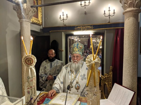 Στο τέλος ο Σεβασμιώτατος τέλεσε την επιμνημόσυνη δέηση για την ανάπαυση της ψυχής του τελευταίου αυτοκράτορα του Βυζαντίου, Κωνσταντίνου Παλαιολόγου αλλά και των χιλιάδων Ελλήνων – Ρωμιών οι οποίοι έπεσαν μαχόμενοι για την πίστη και την πατρίδα στα απόρθητα τείχη της Κωνσταντινούπολης, την αποφράδα ημέρα της 29ης Μαΐου 1453. Ο Σεβασμιώτατος κάλεσε τους εκκλησιαζόμενους να ενώσουν τις προσευχές τους, αλλά και να μην ξεχνάμε την ιστορία μας και την Βασιλεύουσα πόλη. Ο πρώτος πατριάρχης Γεννάδιος Σχολάριος, μετά την πτώση της Πόλης, ενεδύθει το έμβλημα το αυτοκρατορικό και ταυτόχρονα τον πατριαρχικόν-πνευματικό, τις δύο εξουσίες, ενσαρκώνοντας την παράδοση του γένους μας μέχρι και τον τελευταίο πατριάρχη κ. Βαρθολομαίον που έζησαν ως ελεύθεροι πολιορκημέν για να συνεχίσουν μέχρι και τις μέρες μας να μεταλαμπαδεύουν την ιστορία, τον θρύλον του Βυζαντίου και του πολιτισμού, διατηρώντας στην καρδιά της Ρωμιοσύνης « το πάλι με χρόνια με καιρούς πάλι δικά μας θα΄ ναι ».