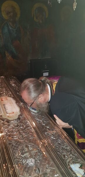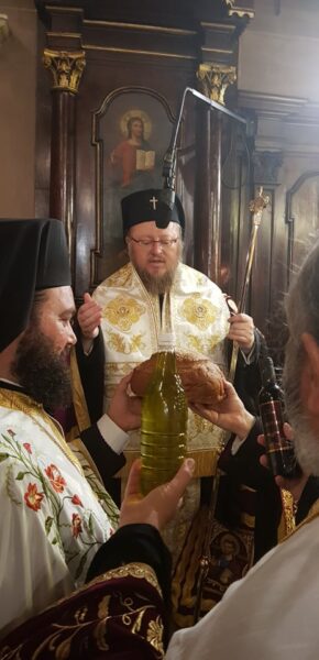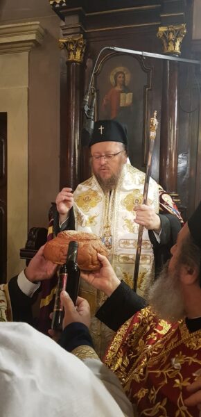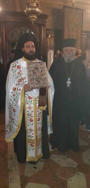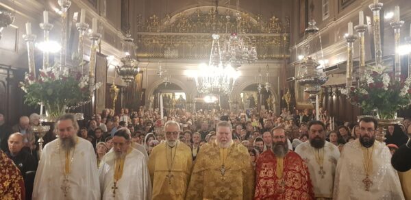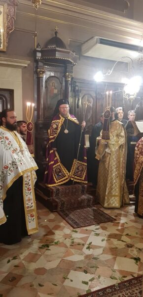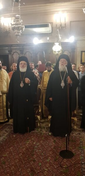Στον Εσπερινό χοροστάτησε ο Σεβασμιώτατος Μητροπολίτης Ρούσσε κ. Ναούμ, ο οποίος προέρχεται από την Εκκλησία της Βουλγαρίας, ενώ συγχοροστάτησαν ο Σεβασμιώτατος Μητροπολίτης Βρεσθένης κ. Θεόκλητος και ο Σεβασμιώτατος Μητροπολίτης Κερκύρας, Παξών και Διαποντίων Νήσων κ. Νεκτάριος.