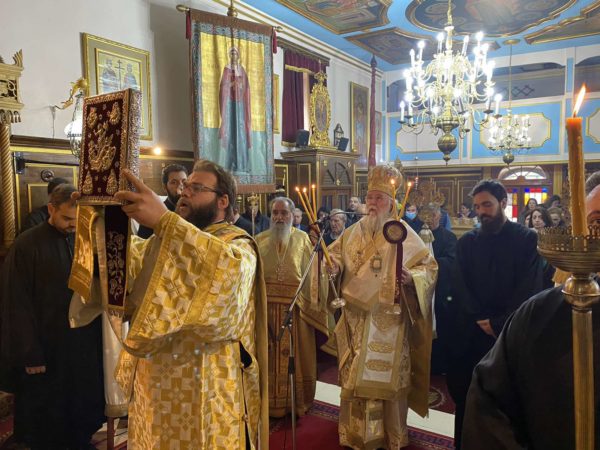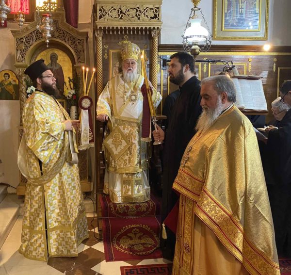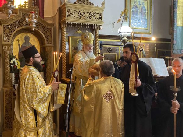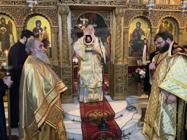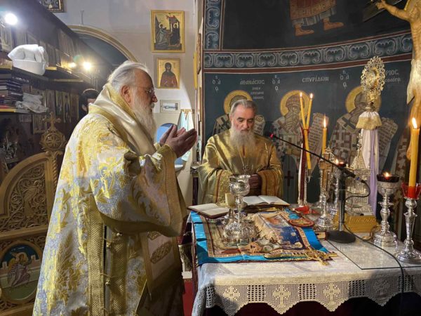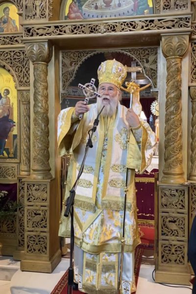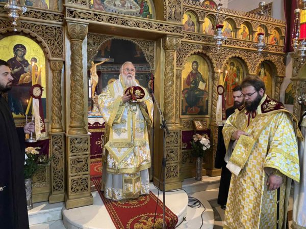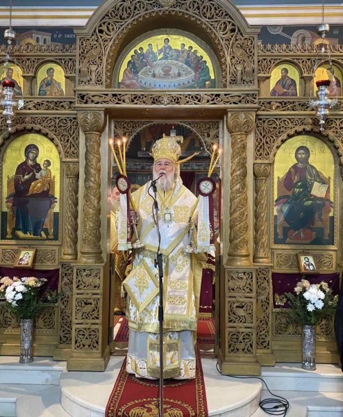Προς το Τέλος της Θείας Λειτουργίας, απηύθυνε επαινετικούς λόγους για τον εφημέριο π. Ευάγγελο, και για το έργο το οποίο συντελείται σε αυτή την ενορία.