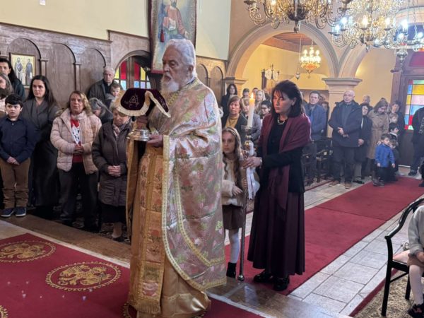 Στο τέλος, ο Σεβασμιώτατος ευχήθηκε στους ανθρώπους να έχουν μία ευλογημένη περίοδο κατάνυξης και προσευχής. Περί το τέλος της Θείας Λειτουργία και προ της απολύσεως, απευθυνόμενος ο Σεβασμιώτατος στο πολυπληθές εκκλησίασμα, είπε ότι η μέρα είναι συναισθηματικά φορτισμένη, διότι ο επί σαρανταοκτώ έτη πνευματικός πατέρας και εφημέριός τους, ο π. Βασίλειος, παραδίδει τη σκυτάλη στο νέο εφημέριο, τον π. Κωνσταντίνο Σωτήρχο. Ο Σεβασμιώτατος ανέφερε στους ανθρώπους ότι ο π. Βασίλειος στα εικοσιτρία χρόνια ποιμαντικής του ευθύνης της Ιεράς Μητροπόλεως, στάθηκε εκ των στενών και καταξιωμένων συνεργατών του στον τομέα της φιλανθρωπίας, της κοινωνικής ευποιίας και της πρόνοιας του έργου της Ιεράς Μητροπόλεως. Είναι εκείνος ο καταξιωμένος εφημέριος της ενορίας του Αγίου Μάρκου ο οποίος ανέλαβε ένα τεράστιο έργο από την αρχή της ιερατικής του ζωής καθώς η κωμόπολη του Αγίου Μάρκου κατέρρεε και μετεγκατεστάθη στον τόπο όπου βρίσκεται σήμερα. Σε όλες τις δυσκολίες της εποχής εκείνης, στάθηκε δυνατός ούτως ώστε να ανοικοδομήσει εκ βάθρων τον νέον Ιερόν Ναόν του Αγίου Μάρκου και να τον φθάσει στο παρόν κάλλος, να συμπαρασταθεί στους ανθρώπους οι οποίοι έκτιζαν και εκείνοι τα σπίτια τους, να τους αγκαλιάσει ως στοργικός πνευματικός πατέρας και να γίνει μία οικογένεια η ενορία του Αγίου Μάρκου καθώς ο π. Βασίλειος είχε επιθυμήσει. Γνήσιος ιερεύς του Υψίστου. Στάθηκε αρωγός στη χαρά των ανθρώπων, στις λύπες και το πένθος τους, στα οικογενειακά προβλήματά τους, στη νεότητα, στα πολιτιστικά δρώμενα, συμπαραστάτης των σχολείων και με επιπλέον έναν προσωπικό οικογενειακό σταυρό τον οποίο σηκώνει αγόγγυστα αλλά και δοξολογικά στο Θεό. Οι άνθρωποι, συγκινημένοι, ανταποκρίθηκαν στις επευφημίες για την αξιότητα του π. Βασιλείου και την ευγνωμοσύνη τους που εκφράστηκαν μέσω εκπροσώπων της ενορίας. Εκείνο το οποίο έκανε εντύπωση είναι η ταπείνωση του π. Βασιλείου που υποκλίθηκε μπροστά στο νέο ιερέα, δηλώνοντάς του ότι εκείνος πλέον θα είναι ο εφημέριος και τον καλωσόρισε με αγάπη και ταπείνωση κύπτοντας να του φιλήσει το χέρι. Η εικόνα όντως ήταν συγκινητική διότι ο ένας προσέπεσε εις τον άλλο ζητώντας αλλήλων την ευχή και ησπάσθησαν τον ασπασμό της αγάπης.