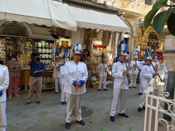 Ο Άγιος Σπυρίδωνας δεν βγήκε φέτος στα καντούνια της Κέρκυρας. Οι λατρευτικές εκδηλώσεις για την ανάμνηση του θαύματος του Αγίου Σπυρίδωνος, διά του οποίο έσωσε την Κέρκυρα στις 11 Αυγούστου 1716 από την πολιορκία των Τούρκων, έγιναν τηρώντας όλα τα περιοριστικά μέτρα για την πανδημία. Η λιτάνευση του Ιερού Σκηνώματος έγινε εντός του Ιερού Προσκυνήματος του Αγίου Σπυρίδωνος, ενώ απ’ έξω παιάνιζε η φιλαρμονική μπάντα του Δήμου