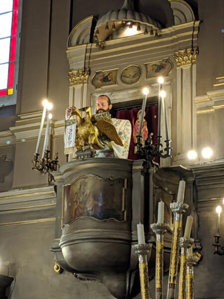 Η λιτάνευση έγινε εντός του ναού, και η φιλαρμονική μπάντα του Δήμου ήταν έξω από τον ναό