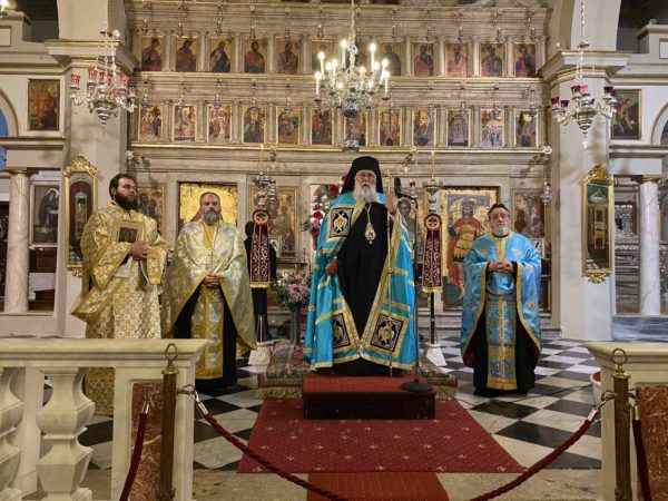 Εις τον Μητροπολιτικό Ναό απευθυνόμενος στο εκεί εκκλησίασμα ο Σεβασμιώτατος έλαβε αφορμή από του στοίχους, « Χαίρε του πεσόντος Αδάμ η ανάκλησις, Χαίρε των δακρύων της Εύας η λύτρωσις ». Ο πρώτος Αδάμ, ο χοϊκός γενάρχης μας, εξέπεσε από την χάρι και την κοινωνία του Θεού και συμπαρέσυρε σε αυτήν την πτώση του, όλη την δημιουργία του Θεού – κτίση. Συμμέτοχος ήτο και η Εύα, η οποία παρεκίνησε τον Αδάμ σε αυτή την διακοπή της κοινωνίας με τον Θεό. Όμως επειδή ο Θεός Πατέρας μας που κατά τον Ευαγγελιστή Ιωάννη είναι αγάπη, δεν θέλησε την αιώνια αποστροφή Του από την δημιουργία Του, διότι όλη η δημιουργία Του, συντελέστηκε εξ αγάπης. Ο νέος Αδάμ είναι ο εναθρωπήσας Υιός και Λόγος του Θεού, ο οποίος αναδημιουργεί τον άνθρωπο και την κτίση. Ο πρώτος Αδάμ συμπαρέσυρε την κτίσην στην ακοινωνησία με τον Θεό, ενώ ο δεύτερος Αδάμ, ο Ιησούς Χριστός με την θυσία Του, ξανασυνδέει τον άνθρωπο και την κτίσην με το Θεό Πατέρα. Η πρώτη Εύα παρέσυρε τον Αδάμ στην φθορά και τον θάνατο, η νέα Εύα, η Θεοτόκος με την ελεύθερη βούληση της, συνεργάζεται με τον Θεό για την πραγμάτωση του προαιωνίου σχεδίου της σωτηρίας μας. Ο Σεβασμιώτατος κάλεσε τους ανθρώπους να αναλογιστούμε την προσφορά της Παναγίας μας στην ζωή μας και να γονατίσουμε μπροστά της, με ευγνωμοσύνη ζητώντας πάντοτε τις πρεσβείες για όλη την ανθρωπότητα από τον Κύριο μας τον Ιησού Χριστό.