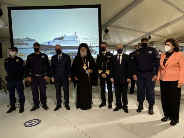 Ο Σεβασμιώτατος Μητροπολίτης Κερκύρας κ. Νεκτάριος τέλεσε τον Αγιασμό στην επίσημη τελετή παράδοσης του διασωστικού ασθενοφόρου σκάφους του Λιμενικού Σώματος στο νησί την Δευτέρα 22 Νοεμβρίου 2021, παρουσία του Υπουργού Εμπορικής Ναυτιλίας κ. Γιάννη Πλακιωτάκη, του Αρχηγού του Λιμενικού Σώματος κ. Θεόδωρου Κλιάρη, των Γενικών Γραμματέων του Υπουργείου, της κυρίας Περιφερειάρχου Ρόδης Κράτσα, των βουλευτών της Κέρκυρας κ. Στεφάνου Γκίγκα και του κ. Δημητρίου Μπιάγκ, καθώς και των δημάρχων της Κέρκυρας κ. Μερόπης Υδραίου, κ. Γεωργίου Μαχειμάρη, κ. Κωνσταντίνου Λέσση και των Παξών κ. Σπύρου Βλαχοπούλου και όλων των τοπικών αρχών.