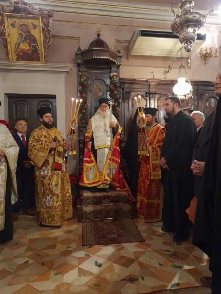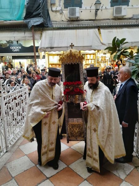 Της ακολουθίας προεξήρχε ο Σεβασμιώτατος Μητροπολίτης Κερκύρας, Παξών και Διαποντίων Νήσων κ. Νεκτάριος, ο οποίος ευχήθηκε στους πιστούς να είναι ευλογημένη η οδός προς την Μητρόπολη των εορτών τα Χριστούγεννα, με τις πρεσβείες του Αγίου Σπυρίδωνος.