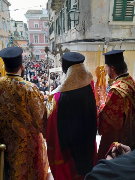 Στην ακολουθία παιάνισαν η Παλαιά Φιλαρμονική και η Φιλαρμονική ΜΑΝΤΖΑΡΟΣ, κατά την κερκυραϊκή παράδοση.