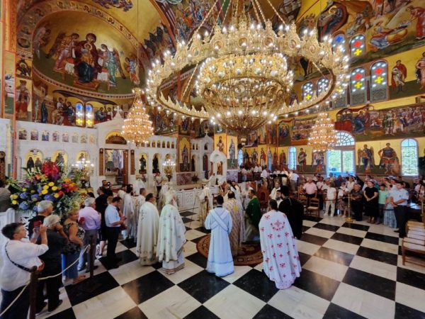 Το πρωί της Τετάρτης 16 Αυγούστου 2023, στον Όρθρο χοροστάτησε ο Σεβασμιώτατος Μητροπολίτης Νικαίας κ. Αλέξιος ο οποίος στη συνέχεια προεξήρχε στο Πολυαρχιερατικό συλλείτουργο.