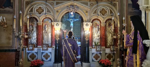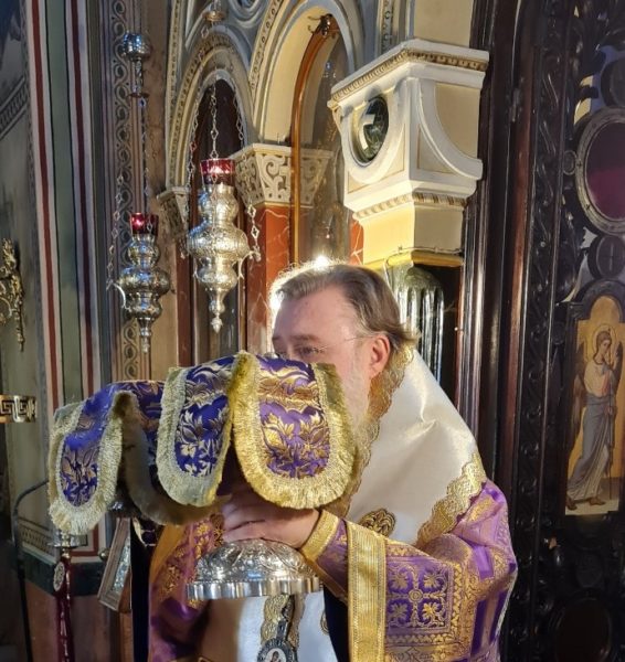 Ο Σεβασμιώτατος, Μητροπολίτης Κηφισίας, Αμαρουσίου, Ωρωπού και Μαραθώνος κ. Κύριλλος τέλεσε την Θεία Λειτουργία των Προηγιασμένων Τιμίων Δώρων, συνεπικουρούμενος από τον Γενικό Αρχιερατικό Επίτροπο και τον Αρχιερατικό Επίτροπο Κηφισιάς.