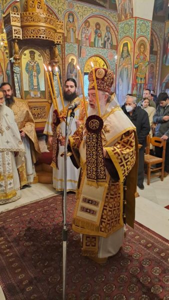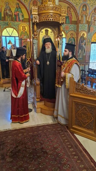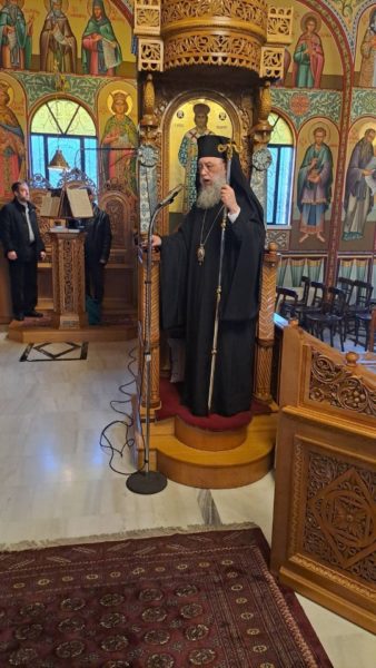 Στο Ιερό Παρεκκλήσιο Μεταμορφώσεως του Σωτήρος, Αγίου Νικολάου και Αγίου Γρηγορίου του Θεολόγου, της Ενορίας Αγίου Αθανασίου Μαρκοπούλου Ωρωπού χοροστάτησε στον Όρθρο και προεξήρχε της Θείας Λειτουργίας, την Κυριακή της Απόκρεω, 23 Φεβρουαρίου 2025, ο Σεβασμιώτατος Μητροπολίτης Κηφισίας, Αμαρουσίου, Ωρωπού και Μαραθώνος κ. Κύριλλος, συμπαραστατούμενος από ιερείς της περιοχής και τον διάκονό του.