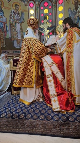 Κατά τη διάρκεια της Θείας Λειτουργίας, τελέσθηκε η εις Πρεσβύτερον χειροτονία του διακόνου Σιλουανού Πατσάλου, εγγάμου, εκπαιδευτικού, πατρός τριών τέκνων και γόνου ευσεβούς Ιερατικής Οικογενείας καθώς είναι εγγονός του π. Ιωάννου Χατζηθανάση πρώην εφημερίου του Ιερού Αγίας Παρασκευής ομωνύμου Δήμου.