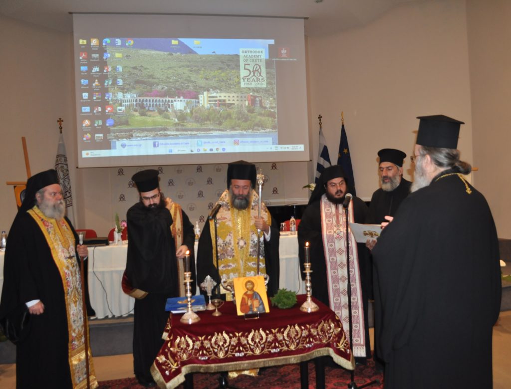 Η διημερίδα άνοιξε με Αγιασμό που τέλεσε ο Σεβασμιώτατος Μητροπολίτης Ρεθύμνης και Αυλοποτάμου κ. Πρόδρομος, ο οποίος και ανέπεμψε ειδική Δέηση-Προσευχή υπέρ αναρρώσεως «των αιφνιδίως καί βιαίως πληγέντων καί τετραυματισμένων εκ του προσφάτου σιδηροδρομικού δυστυχήματος εν τη περιοχή των Τεμπών» και Τρισάγιο υπέρ αναπαύσεως «των εν τη περιοχή των Τεμπών μαρτυρικώς τελειωθέντων», με την τήρηση ενός λεπτού σιγής. Ο Ποιμενάρχης των Ρεθυμνίων ευχαρίστησε δια την πρόσκληση, αναφέρθηκε εις την σπουδαιότητα του εν λόγω Συνεδρίου και μετέφερε τις ευχές της Ιεράς Επαρχιακής Συνόδου της Εκκλησίας της Κρήτης.
