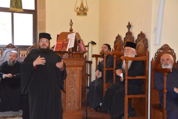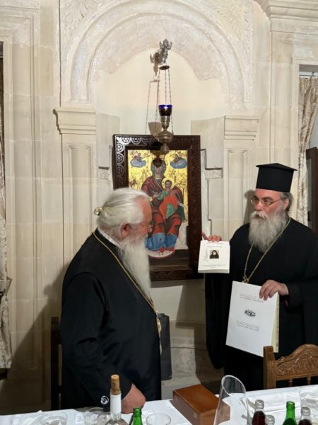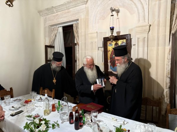 Ακολούθως προσέφερε Σταυρό αγιασμού, αντίγραφο εκ του Κειμηλιαρχείου της Μονής, ως και Τόμο της Αγίας και Μεγάλης Συνόδου, τόσο στους Σεβασμιωτάτους αγίους Αρχιερείς, ως και σε όλους τους Κληρικούς και συνοδούς.