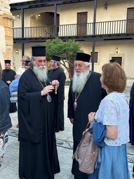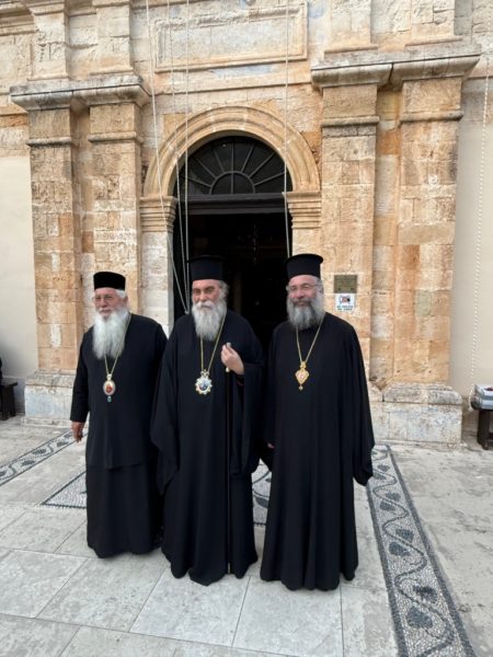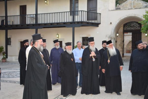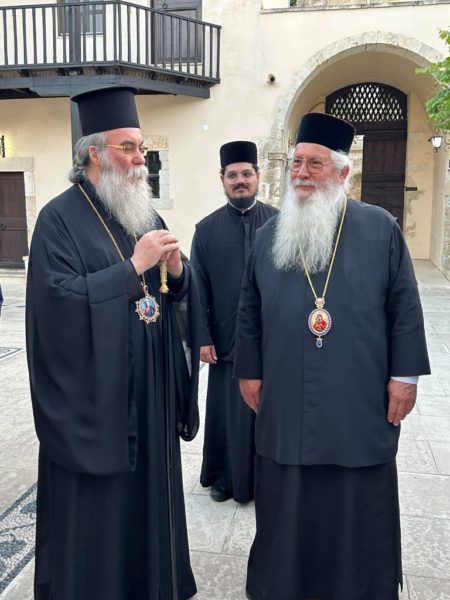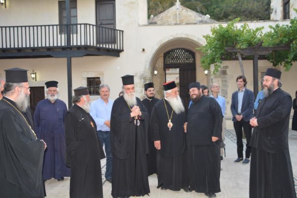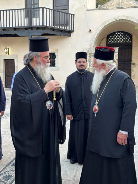 Κατόπιν προσκλήσεως του Σεβασμιωτάτου Μητροπολίτου Κισάμου και Σελίνου κ. Αμφιλοχίου στην Ιερά Μονή Γωνιάς προσήλθε και ο Σεβασμιώτατος Μητροπολίτης Ρεθύμνης και Αυλοποτάμου κ. Πρόδρομος, ο οποίος φιλοξενεί τον Σεβασμιώτατο Μητροπολίτη Θηβών, Λεβαδείας και Αυλίδος κ. Γεώργιο και την πολυπληθή συνοδεία του στο Κέντρο Πολιτισμικής και Κοινωνικής Διακονίας «Θεομήτωρ» της Ιεράς Μητροπόλεως Ρεθύμνης και Αυλοποτάμου.