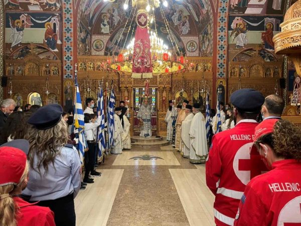 Κατά την Δοξολογία που ακολούθησε ο Σεβασμιώτατος αναφέρθηκε στο μήνυμα της ημέρας σημειώνοντας: «Η σημερινή ημέρα καλεί όλους μας όχι σε στείρους και στερεότυπους πανηγυρισμούς, αλλά σε περίσκεψη του χρέους και της ευθύνης που φέρουμε ως απόγονοι ηρωικών προγόνων. Καθώς όπως εκείνοι όρθωσαν το ανάστημα τους στον κατακτητή της εποχής εκείνης έτσι και εμείς σήμερα οφείλουμε, έχουμε χρέος και ευθύνη, έναντι των επερχομένων γενεών, να ορθώσουμε το ανάστημα μας και να αντισταθούμε σε κάθε είδους κτήση και κατάκτηση, η οποία θα φαλκιδεύσει τα ιερά και τα όσια του Γένους, εκείνα δηλ. για τα οποία οι γενήτορες μας δεν δίστασαν να δώσουν ακόμα και το αίμα τους», κατέληξε.