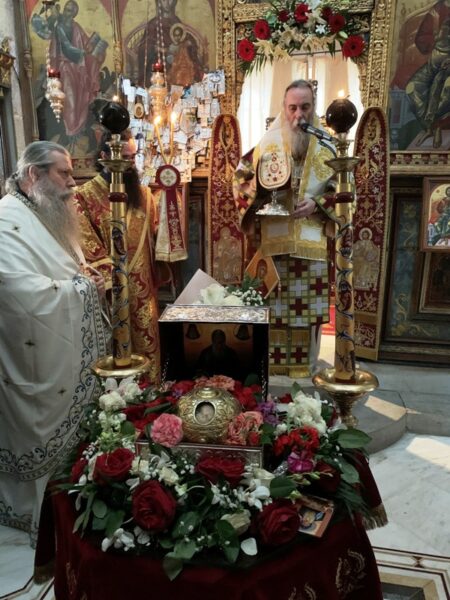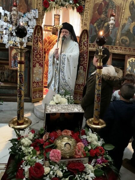 Ο Σεβ. Μητροπολίτης Κισάμου και Σελίνου κ.Αμφιλόχιος εξέφρασε την ευγνωμοσύνη και τις ευχαριστίες του προς τον Σεβ. Μητροπολίτη Χαλκίδος κ. Χρυσόστομο δια την ευλογητική άδεια ελεύσεως της Τιμίας Κάρας ως και τον Καθηγούμενο Γέροντα Γαβριήλ δια την αποδοχή της πρόσκλησης.