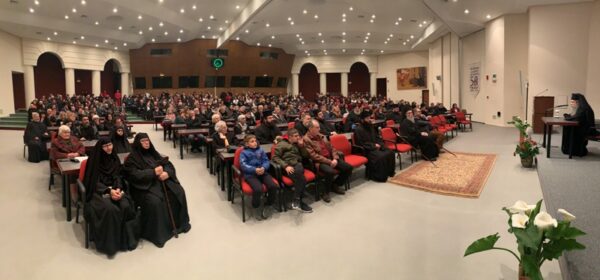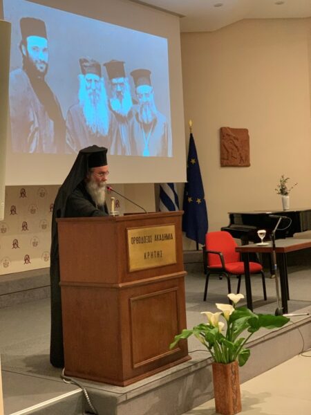 Του Αρχιερατικού Εσπερινού ακολούθησε πνευματική ομιλία εις την παρακείμενη Ορθόδοξο Ακαδημία Κρήτης, όπου ο Γέροντας Γαβριήλ ομίλησε δια ένα άλλο μεγάλο Άγιο, «συνεχιστή του Οσίου Δαυίδ», όπως σημείωσε, τον όσιο Ιάκωβο. Παρά το προχωρημένο της ώρας και κυρίως, παρά τις δυσμενής καιρικές συνθήκες (έντονη βροχή και δυνατό κρύο) το κεντρικό αμφιθέατρο της Ορθοδόξου Ακαδημίας Κρήτης, χωρητικότητας 700 και πλέον θέσεων, πλημύρισε από κόσμο, κόσμο που με παραδειγματική προσοχή και δέος άκουσε την ομιλία του Καθηγούμενου, Γέροντος Γαβριήλ.