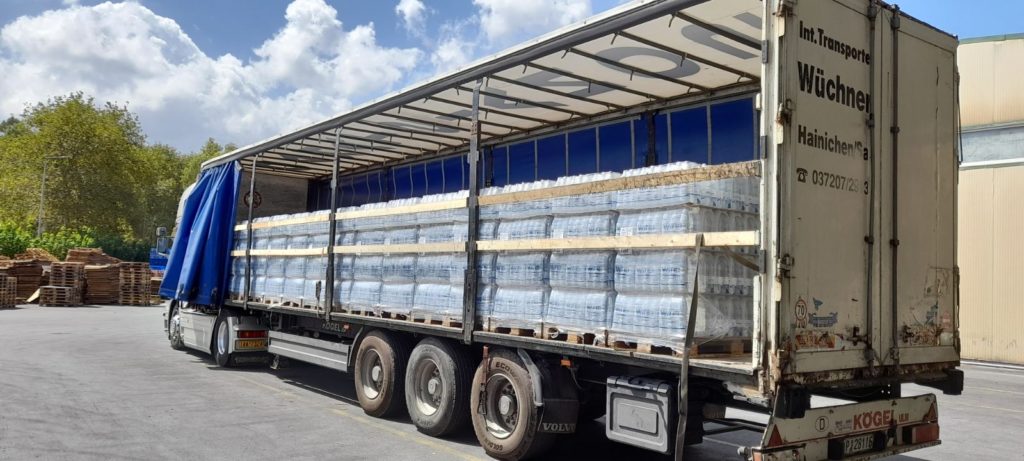 Η Ιερά Μητρόπολη Κισάμου και Σελίνου, συμπάσχουσα στον πόνο και την οδύνη των συνανθρώπων μας που, με ένα τόσο βίαιο και απρόσμενο τρόπο, θρηνούν απώλειες αγαπημένων τους προσώπων, απώλειες σπιτιών και περιουσιών, απώλειες των κόπων και των μόχθων τους μιας ολάκερης ζωής, απέστειλε ήδη ένα φορτηγό με εμφιαλωμένα νερά (33 παλέτες, περί τις 17.000 χιλιάδες μπουκάλια νερού) στην κάλυψη μέρους αναγκών πλημμυροπαθών συνανθρώπων μας.