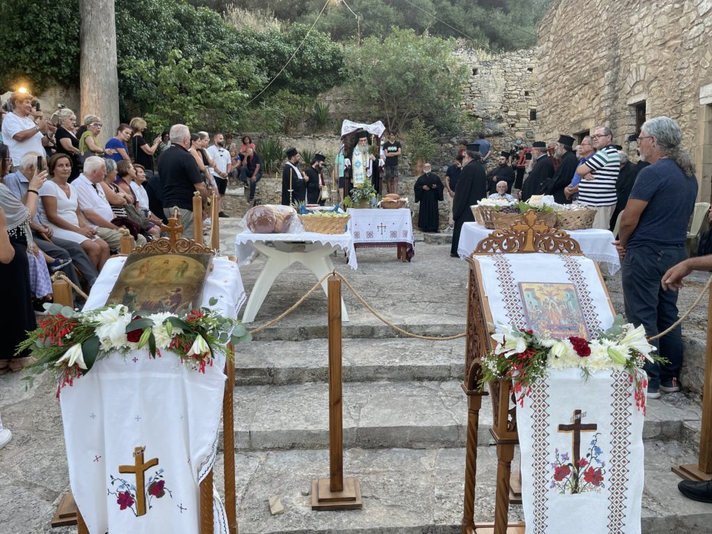 «Στους ανατρεπτικούς καιρούς των πολλών κρίσεων και μεταβολών όπου η περιρρέουσα ατμόσφαιρα μοιάζει να παρασύρει όλους μας στον εγκλωβισμό του νου, στερώντας μας την ομορφιά, την ουσία και την αλήθεια της ζωής· η ευλογημένη αυτή περίοδος του Αγίου Δεκαπενταύγουστου που διανύουμε, το πανάγιο πρόσωπο της Θεοτόκου Μαρίας που δεσπόζει την περίοδο αυτή ως και όλα όσα βιώνουμε εντός της αγίας μας Εκκλησίας, μας βοηθούν να ελευθερωθούμε από τα δεσμά και τις αλυσίδες που μας στερούν να γευθούμε την χαρά και την αγάπη της Θεϊκής παρουσίας στην ζωή μας. Εγκλωβιστήκαμε, εν πολλοίς, στο ψευτοδίλημμα: «πίστη ή λογική»; και θεωρήσαμε, οι πολλοί, ότι κάθε τι που δεν ερμηνεύεται, δεν εξηγείται, με την λογική είναι απορριπτέο και μη αληθινό. Δηλώνοντας αδυναμία να υπερβούμε την λογική για να οδηγηθούμε στην πίστη και το θαύμα, την εμπειρία της χάριτος του Θεού, στερούμε, εαυτούς και αλλήλους, από την εμπειρία της Χαρίτος, χωρίς την οποία ο άνθρωπος οδηγείται στην ανυπαρξία. Η πίστης είναι εμπειρία χάριτος και τρόπος ζωής, υπόθεσις της καρδιάς και όχι της λογικής και της σκέψις μας. Η πίστης όχι μόνον δεν καταργεί την λογική, αλλά συμβάλλει εις την ωρίμανση και καλλιέργεια της. Πίστης δεν σημαίνει κατάργηση του νου, της σκέψης, αλλά υπέρβαση, άνοιγμα της καρδιάς, καθώς δια μέσω της πίστης πλατύνεται ο νους μας και χωρά-κατανοεί όσα η λογική και η σκέψη αδυνατεί, γι΄ αυτό και τα απορρίπτει, εμπαίζοντας και αρνούμενη το μυστήριο και το θαύμα. Ας ανοίξουμε λοιπόν τον νου και την καρδιά μας και ας αφήσουμε το άγγιγμα της γλυκιάς μας Παναγίας να μαλακώσει τις ψυχές μας, για να φωτιστεί ο νους και να πλατυνθεί η καρδία μας», ανέφερε ο Σεβ. Μητροπολίτης Κισάμου και Σελίνου κ. Αμφιλόχιος, ευχαριστώντας τον Δήμαρχο Πλατανιά κ. Ι. Μαλανδράκη δια την αρωγή εις την οργάνωση, τον Εφημέριο της Ενορίας Επισκοπής, Αιδ. π. Χρήστο Καψαλάκη ως και τον Αιδ. Πρωτ. π. Γεώργιο Σπανουδάκη, εις τον οποίο και είχε ανατεθεί ο συντονισμός της οργάνωσης των προσφερομένων. Ακολούθησε η διανομή των καρπών, στους εκατοντάδες πιστούς που μετείχαν από την ευρύτερη περιοχή.