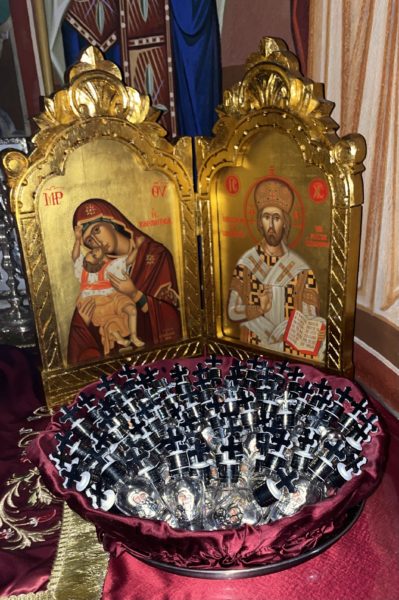 Προς το πολυπληθές εκκλησίασμα, το οποίο μετείχε με ιδιαίτερη προσοχή, διανεμήθηκαν, ως ευλογία, φιαλίδια αγιασμού με την προτροπή του Ποιμενάρχου κ. Αμφιλοχίου όπως: «φυλάτετε τον Αγιασμό του μήνα και καθημερινά, μετά την πρωινή σας προσευχή, πίνετε λίγο αγιασμό».