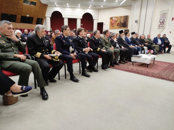 Ο Σεβ. Μητροπολίτης Κισάμου και Σελίνου κ. Αμφιλόχιος, με την ιδιότητα του Προέδρου της Ορθοδόξου Ακαδημίας Κρήτης, καλωσόρισε και ευχαρίστησε τον εκλεκτό ομιλητή, σημειώνοντας πως «Ο Ελληνισμός όχι μόνο διασώθηκε μέσα από τον Χριστιανισμό, αλλά μετουσιώθηκε σε όχημα μετάδοσης των αμετάθετων-αιώνιων αληθειών της πίστεως μας. Εάν επιθυμούμε, ως Έθνος και ως λαός, να μην συνθλιβούμε στην χοάνη της παγκοσμιοποίησης, οφείλουμε να συνειδητοποιήσουμε ότι ο μόνος τρόπος να περισωθούμε είναι η διαφύλαξη της πίστης των πατέρων μας, η οποία αποτελεί ταυτοτικό στοιχείο του Γένους μας.», κατέληξε ο Σεβ. Μητροπολίτης Κισάμου και Σελίνου κ. Αμφιλόχιος, δεχόμενος και προσφέροντας ενθυμήματα της ημέρας στον εκλεκτό ομιλητή. Πλήθη προσκυνητών μετείχαν στην Θεία Λειτουργία και αρκετός κόσμος στην εόρτιο εκδήλωση της Ορθοδόξου Ακαδημίας Κρήτης, μεταξύ των οποίων ο Αντιπεριφερειάρχης Χανίων κ. Νίκος Καλογερής, όλοι οι Δήμαρχοι των Επαρχιών Κισάμου και Σελίνου, Περιφερειακοί-Δημοτικοί Σύμβουλοι, Ακαδημαϊκοί, Διοικητές Στρατιωτικών Μονάδων του Νομού Χανίων, Πρόεδροι Συλλόγων και Φορέων.