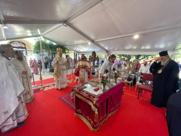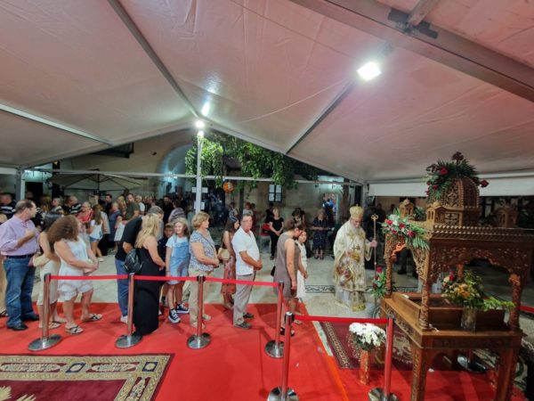 Οι Θείες Λειτουργίες και οι Ι.Ακολουθίες του διημέρου έγιναν στους άνετους και ευρύχωρους αύλειους χώρους της Μονής, χορηγία του επιχειρηματία κ. Ιακώβου Χονδράκη. Ο Σεβασμιώτατος Μητροπολίτης Κισάμου και Σελίνου κ. Αμφιλόχιος, με λόγους ευχαριστίας και ευγνωμοσύνης, χαιρέτισε τους προσκεκλημένους Αγίους Αρχιερείς, σημειώνοντας: «Η Παναγία μας αποτελεί μεγάλο κεφάλαιο της Εκκλησίας. Αιμοδοτεί την Εκκλησία καθώς χωρίς Παναγία δεν υπάρχει Εκκλησία. Ζητώ την χάρι της Παναγίας σημαίνει αγωνίζομαι να θεραπεύσω τα πάθη και τις αδυναμίες μου».