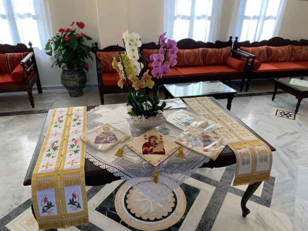 Οι Ιερείς είχαν την ευκαιρία να δουν την πρόσφατη ανακαινισμένη πτέρυγα της Μονής, όπου και φιλοξενήθηκαν και να ξεναγηθούν εις το Ιεροραφείο της Μονής, όπου αδελφές ασκούν ως διακόνημα το κέντημα και την ιεροραπτική.