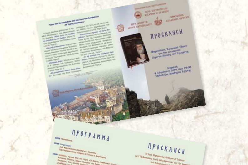Την εκδήλωση συνδιοργανώνουν η Ιερά Μητρόπολη Κισάμου και Σελίνου, η Ιερά Μεγίστη Μονή Βατοπαιδίου και η Ορθόδοξη Ακαδημία Κρήτης.
