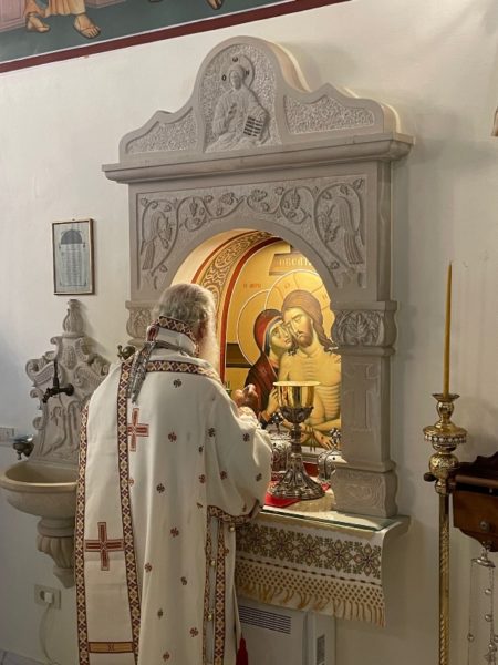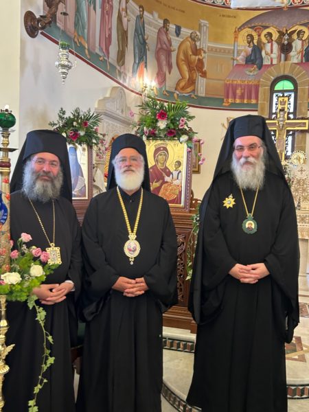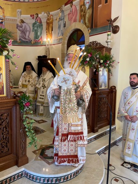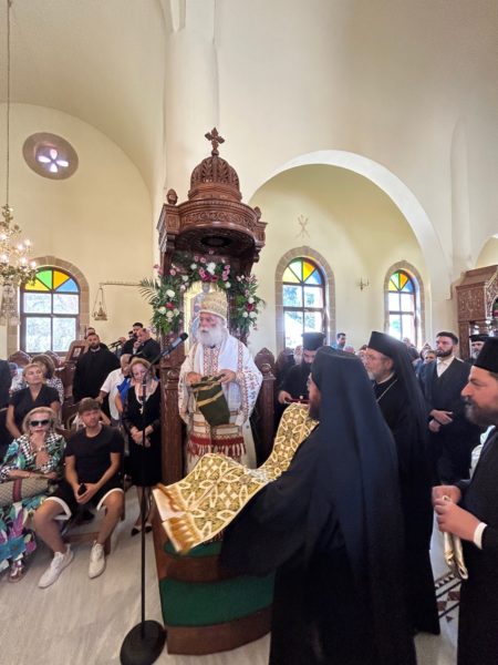 Με τον Μακαριώτατο συλλειτούργησαν οι Σεβασμιώτατοι Μητροπολίτες Κυδωνίας και Αποκορώνου κ. Δαμασκηνός, Ρεθύμνης και Αυλοποτάμου κ. Πρόδρομος, ο οικείος Ποιμενάρχης, Μητροπολίτης Κισάμου και Σελίνου κ. Αμφιλόχιος και ο Θεοφιλέστατος Επίσκοπος, βοηθός του Μακαριωτάτου, Βαβυλώνος κ. Θεόδωρος, συνευχομένου του Σεβασμιωτάτου Μητροπολίτου Αρκαλοχωρίου, Καστελλίου και Βιάννου κ. Ανδρέου.