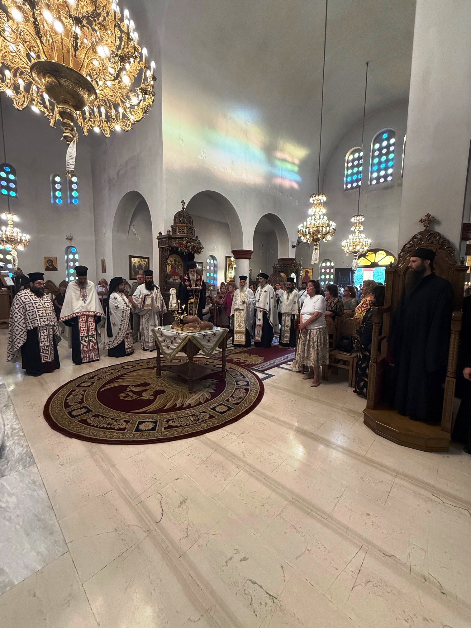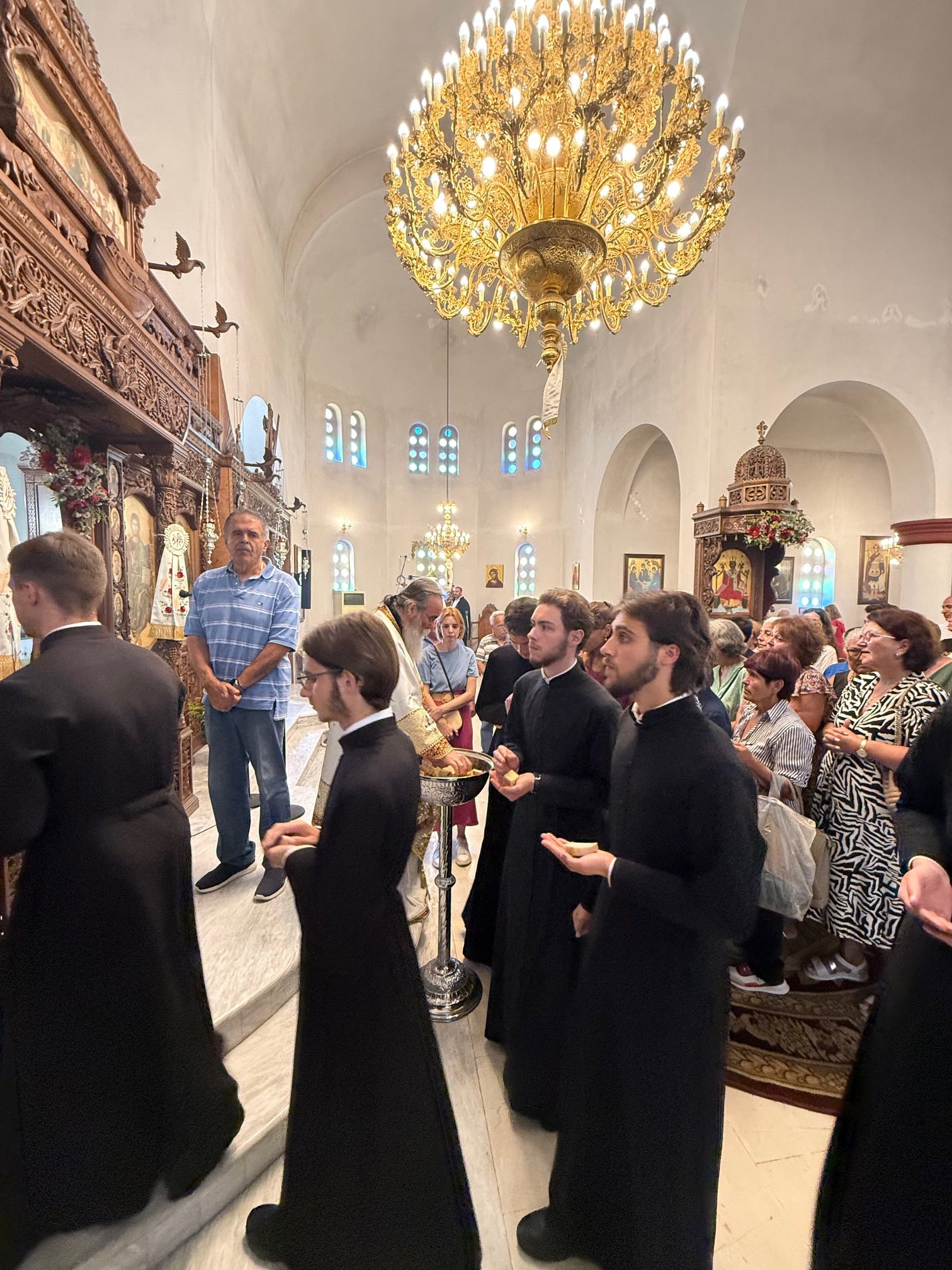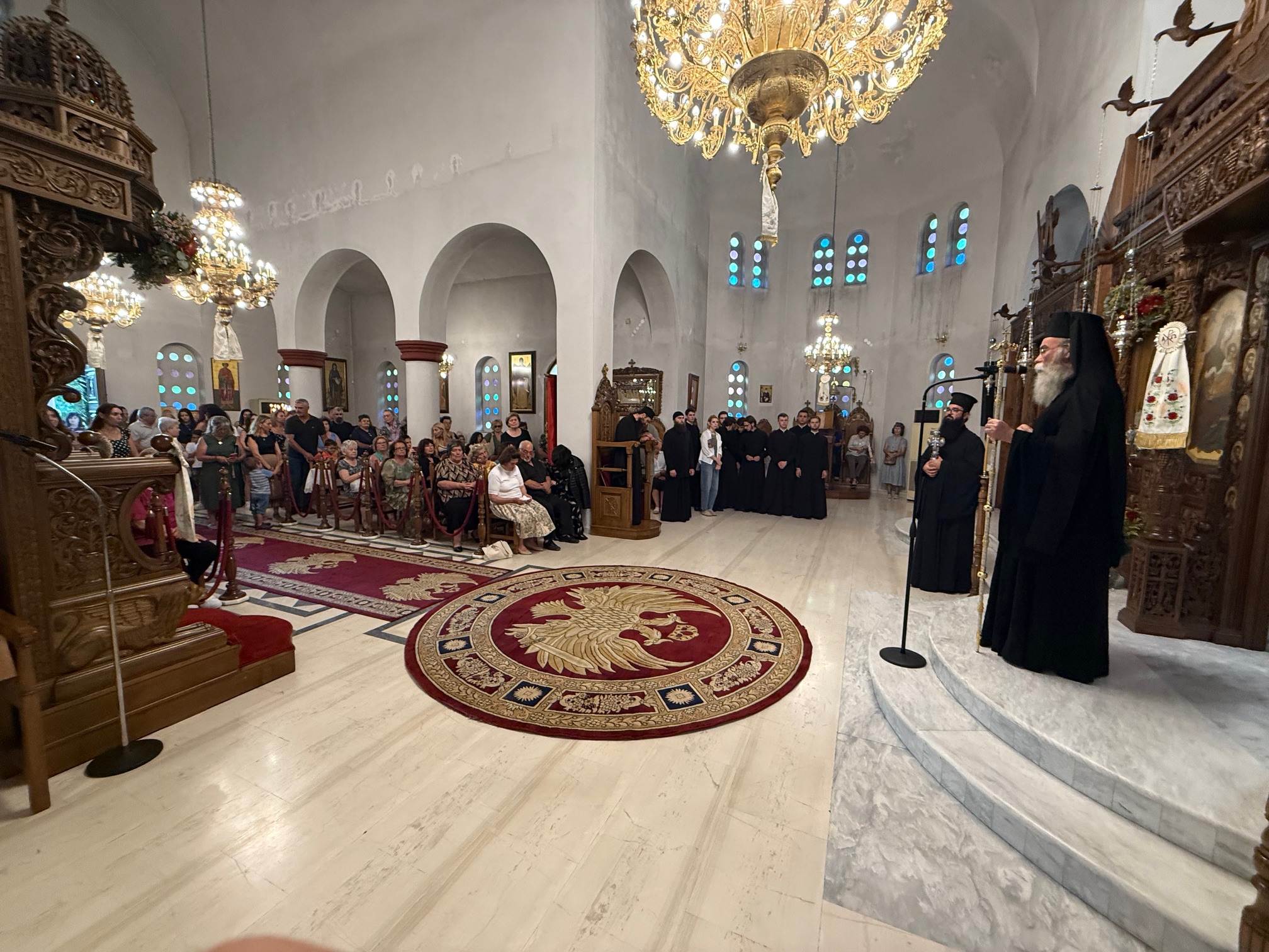 Εκκλησιάστηκαν και συνευχήθηκαν, τόσο στον Εσπερινό, όσο και στην Θεία Λειτουργία, ομάδα Κληρικών και λαϊκών εκ της Ουκρανίας. Ο Θεοφιλέστατος Επίσκοπος Μπακούριν κ. Παντελεήμων, Αντιπρύτανης της Θεολογικής Ακαδημίας Κιέβου, η οποία στεγάζεται στην Λάβρα των Σπηλαίων, Κίεβο, οι Καθηγητές της Ακαδημίας, Αρχ. Μητροφάνης και Λεόντιος ως και 11 φοιτητές, οι οποίοι υπάγονται στον Μητροπολίτη Ονούφριο, και φιλοξενούνται για ένα μήνα στην Ορθόδοξο Ακαδημία Κρήτης, παρακολουθώντας ειδικό πρόγραμμα εκμάθησης της Ελληνικής γλώσσας, καθώς οι φοιτητές προτίθενται να συνεχίσουν τις σπουδές τους στην Ελλάδα, οι οποίοι και έψαλαν, χορωδιακά και καλλίφωνα, μέλη της Θείας Λειτουργίας.