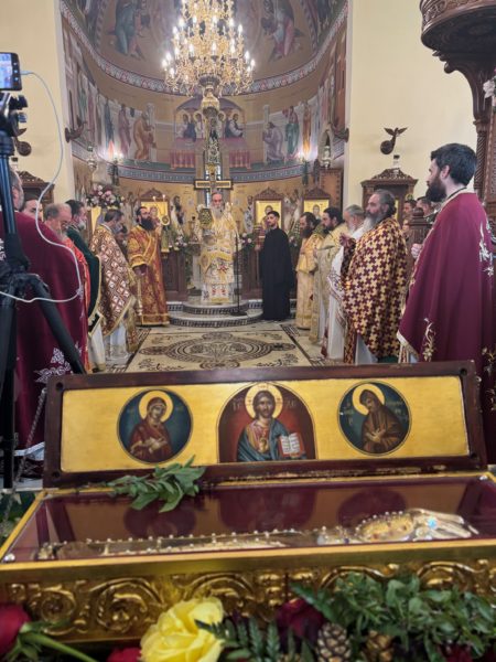 Προεστώς της Θείας Λειτουργίας ο Σεβ. Μητροπολίτης Πέτρας και Χερρονήσου κ. Γεράσιμος, συλλειτουργούντων των Σεβ. Μητροπολιτών: Αρκαλοχωρίου, Καστελλίου και Βιάννου κ. Ανδρέου, Κυδωνίας και Αποκορώνου κ. Δαμασκηνού, Ρεθύμνης και Αυλοποτάμου κ. Προδρόμου και του Σεβ. Ποιμενάρχου κ. Αμφιλοχίου.