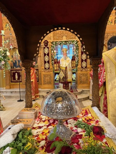 Το απόγευμα της παραμονής, ενώπιον του Ιερού Μητροπολιτικού Ναού, έγινε η υποδοχή αποτμήματος εκ της Τιμίας Κάρας του Αγίου Μεγαλομάρτυρος Ραφαήλ, την οποία θα κόμιζε ο Σεβασμιώτατος Μητροπολίτης Γουμενίσσης, Αξιουπόλεως και Πολυκάστρου κ. Δημήτριος, όμως έκτακτο κώλυμα, τελευταίας στιγμής, δεν του επέτρεψε να ταξιδέψει.