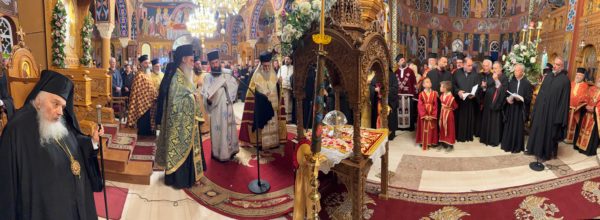 Απέστειλε τον Πρωτοσύγκελλο της Ιεράς Μητροπόλεως, Παν. Αρχιμανδρίτη Παντελεήμονα Θωμόπουλο, μετά συνοδείας Κληρικών.