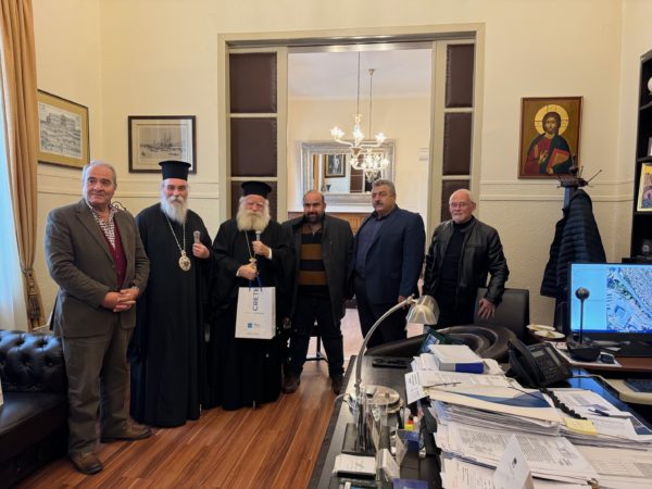 Επ΄ ευκαιρία της ελεύσεως των υψηλών προσκεκλημένων πραγματοποιήθηκε εθιμοτυπική επίσκεψη στον Αντιπεριφερειάρχη Χανίων κ. Νίκο Καλογερή, ο οποίος με περισσή ευγένεια, υποδέχθηκε και φιλοξένησε στο γραφείο του, ανταλλάσοντας αναμνηστικά ενθυμήματα.