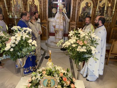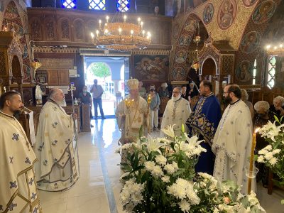 Ανήμερα της εορτής τελέσθηκε πανηγυρική Αρχιερατική Θεία Λειτουργία ιερουργούντος του Σεβασμιωτάτου Μητροπολίτη Κυδωνίας και Αποκορώνου κ. Δαμασκηνού.