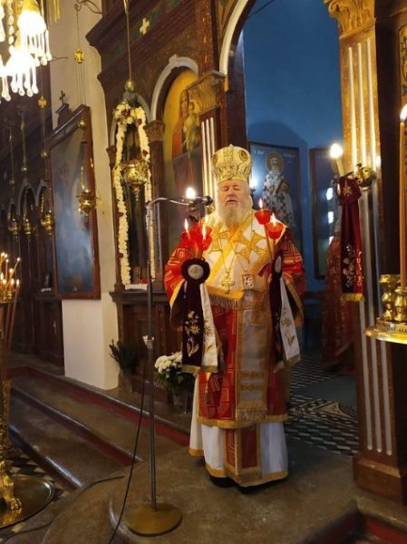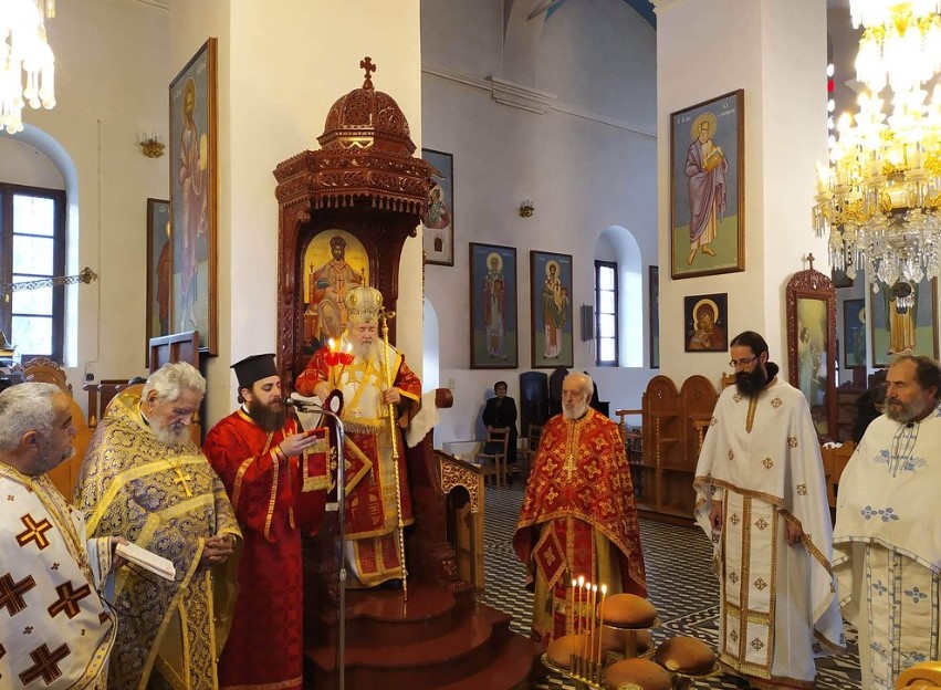 Στην πανηγυρική Αρχιερατική Θεία Λειτουργία ιερούργησε ο Μητροπολίτης Κυδωνίας και Αποκορώνου κ. Δαμασκηνός πλαισιούμενος από τον εφημέριο του Ναού π. Στυλιανό Παπαδιό και ιερείς από όμορες ενορίες.