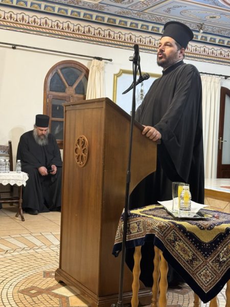 Με λόγια αγάπης έκλεισε τον κατανυκτικό Εσπερινό ο Πρωτοσύγκελλος της Μητροπόλεως μας Αρχιμ. Νικηφόρος Εικοσιδέκας ο οποίος αφού μετέφερε τις πατρικές ευχές του Σεβασμιωτάτου Ποιμενάρχου κ. Δαμασκηνού ευχαρίστησε για την πνευματική ομιλία, τον π. Σιλουανό , με την πλούσια εμπειρική και πνευματική ζωή που διαθέτει, καθώς και για την θυσιαστική του αγάπη προς την Εκκλησία.