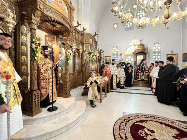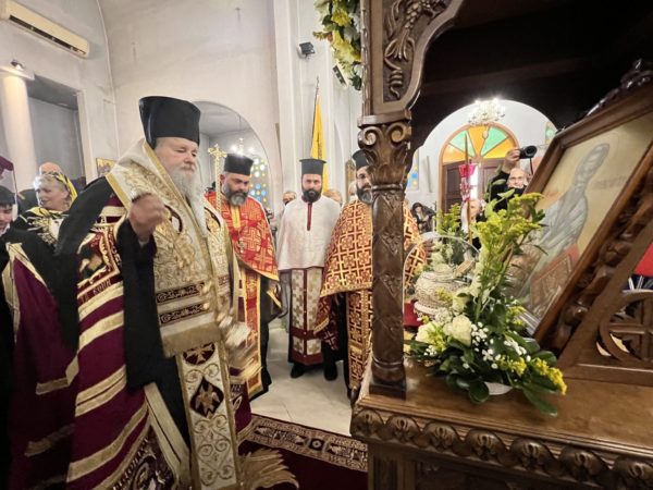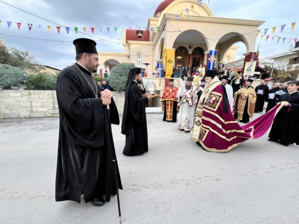 Αμέσως μετά την υποδοχή στον προαύλειο χώρο του ναού από τον Σεβασμιώτατο Μητροπολίτη Κυδωνίας και Αποκορώνου κ. Δαμασκηνό, ακολούθησε πανηγυρικός Αρχιερατικός Εσπερινός χοροστατούντος του Σεβασμιωτάτου, τον οποίο πλαισίωναν ο Πρωτοσύγκελλος της Μητροπόλεως Κυδωνίας και Αποκορώνου Αρχιμανδρίτης Νικηφόρος Εικοσιδέκας, ο Αναπλ. Γενικός Αρχιερατικός Επίτροπος Πρωτ. Γεώργιος Σεργάκης και πλήθος Κληρικών και ευσεβών προσκυνητών.