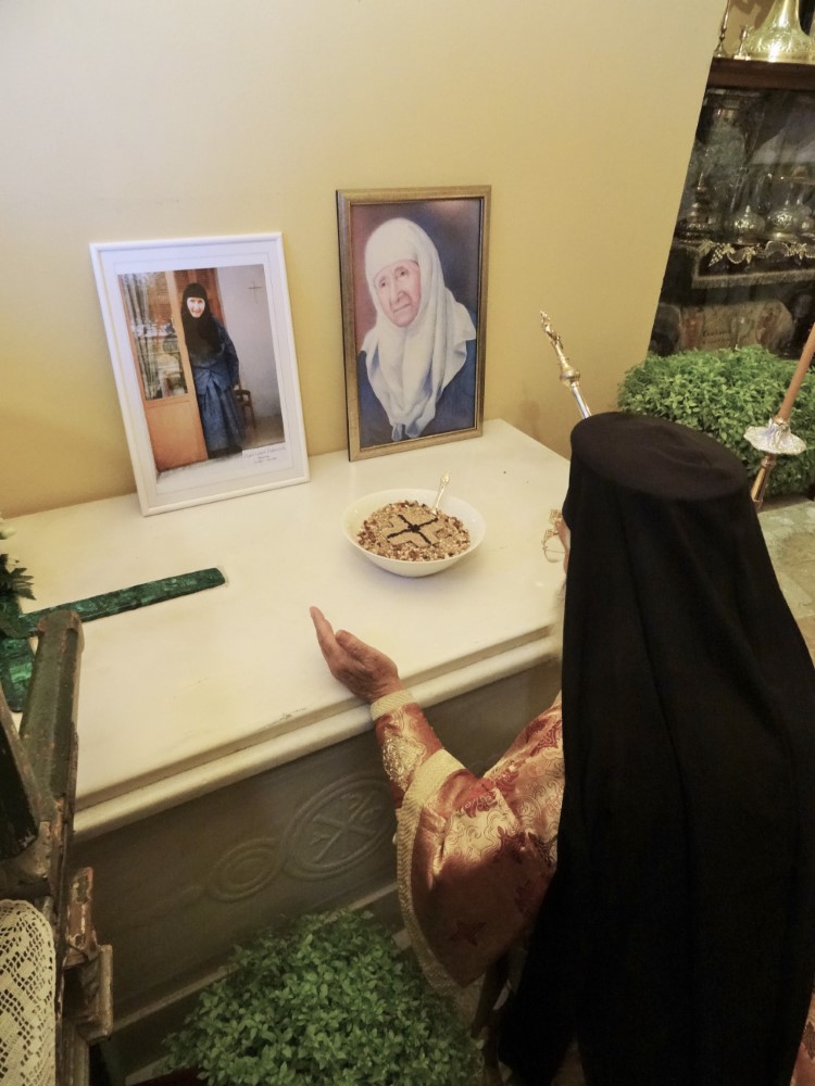 Κατά την Πατριαρχικήν Τάξιν, έμπροσθεν του τάφου της γεροντίσσης, ο Μητροπολίτης γονυκλινής ανέγνωσε την ευχή των τεθνεώτων (ο Θεός των πνευμάτων…).